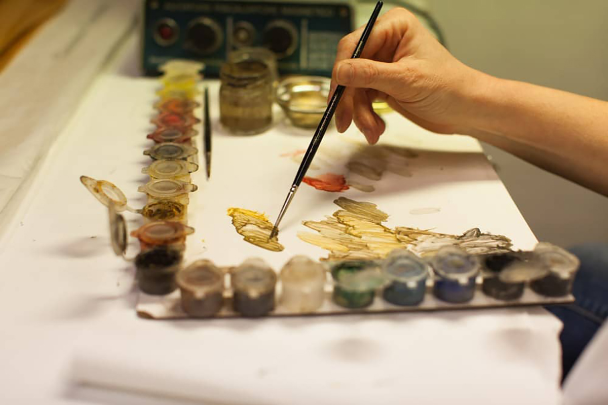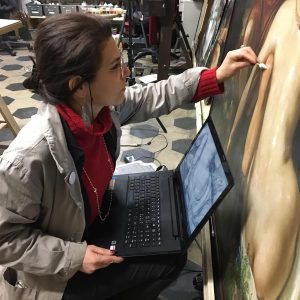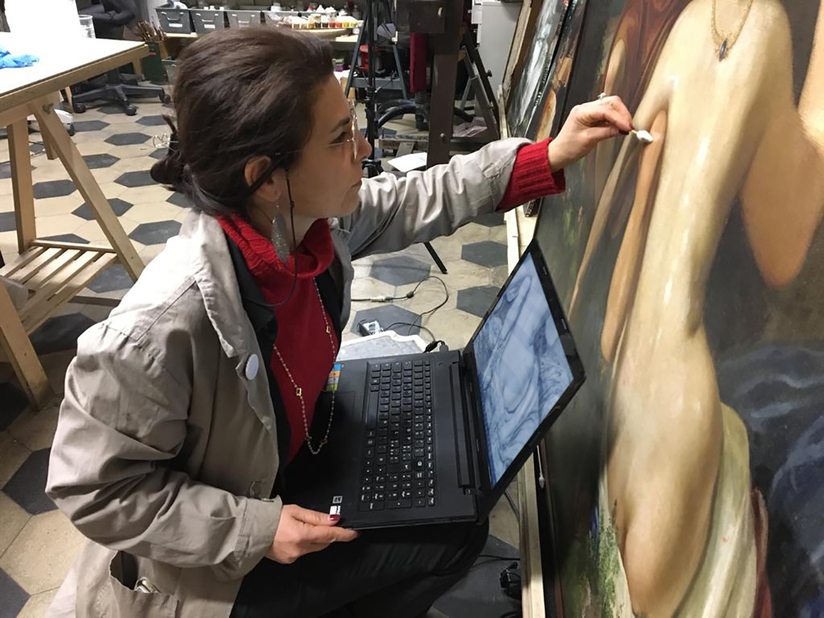 There, she performs conservation and aesthetic interventions on ancient, modern and contemporary works, with a specific and made-to-measure approach. She resorts to new methods and materials, such as low molecular weight paints and reduced alterability colours. Also, her laboratory is supplied with modern and innovative equipment in order to achieve the best possible results with the least invasive intervention.