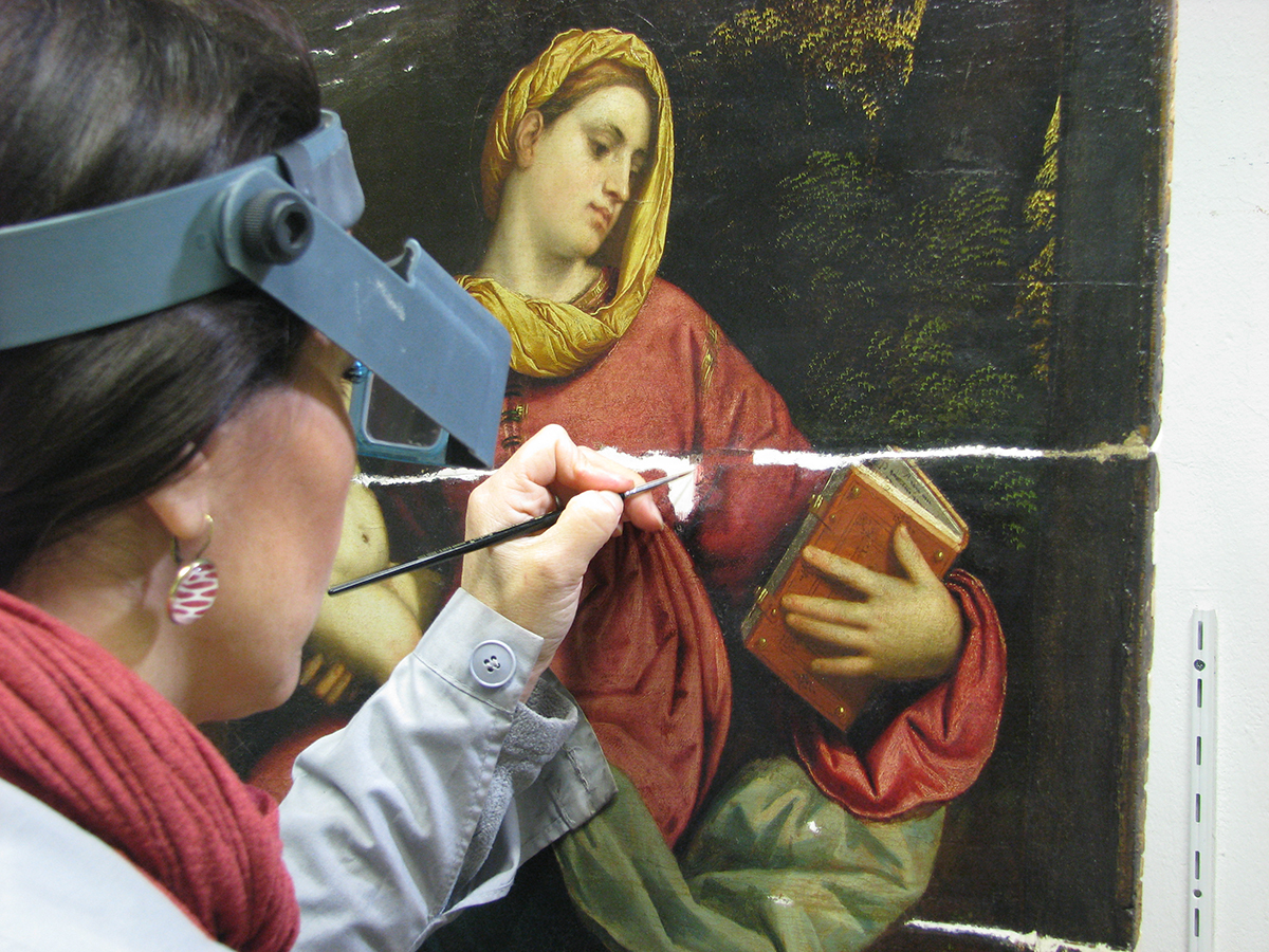 Laura Menegotto is a restorer of paintings on canvas, wood, and copper. She also restores polychromous works.
