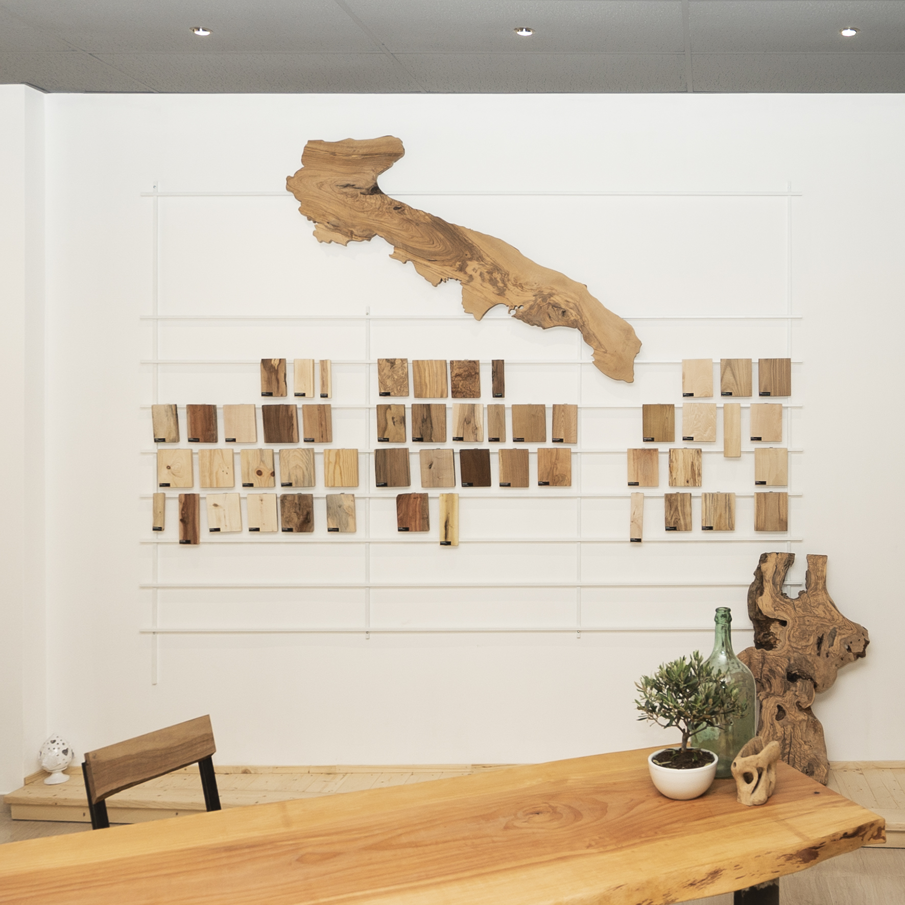 Legno di Puglia is a young company located in the province of Bari and founded by Semmy Marziliano, Angela Matarrese and Vincenzo Rizzi. Aware of the enormous potential of local prime materials, they opened an activity based on the valorisation of the local timber. Starting from trunks of felled trees otherwise destined for destruction, they source their prime material which their skilled craftsmen transform into original creations with a style something between rustic and contemporary and produced in limited numbers. All products are handmade, and the craftsmen use traditional construction techniques to produce everyday objects, decorative accessories and ornaments. A highlight of the showroom is the Xylotheque, a veritable “library of Apulian wood” to disseminate the culture of wood and they also organise seminars and workshops open to the public.