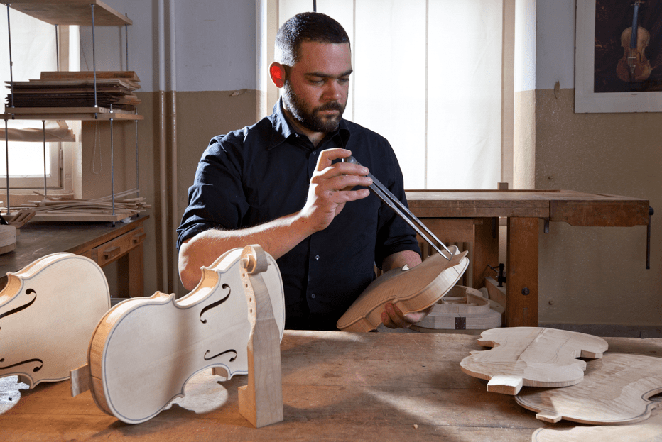 Lorenzo Rossi is a Master maker of bow instruments. He is an expert in the realization of modern instruments such as violins, violas and cellos. He creates instruments modeled inspired from the Milanese school as well as reproductions of antique instruments. He selects the wood himself, uses animal-derived glue and prepares oil paints amber-based, according to personal recipes refined after years of experimental research. He studied at the Civica Scuola di Liuteria in Milan, obtaining the Diploma of “Specialization in bow instruments making” with the highest mark. Since 2008, he has been teaching “Bow instruments making” at the same school that he graduated from. He deepened his training in restoration with Maestro Carlos Arcieri in New York. He also won numerous awards, including two silver medals (categories violin and cello) at the National Competition of Pisogne, and a third place with his cello in the XIII International “Trienniale” Competition of Violin Making Antonio Stradivari 2012. In his workshop, the needs of the musician come first: tuning is a delicate moment that fascinates him. Along with the customer, he searches for the perfect balance between the instrument’s potential and the musician’s personal tastes in terms of acoustics and comfort. The workshop is also available for a free evaluation of the instruments, as well as repair, maintenance, and customized set-up.