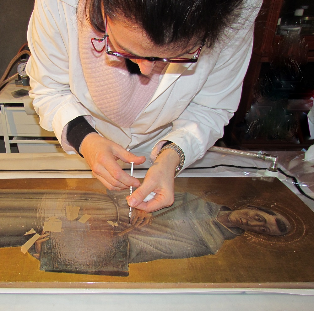Lucia Laita is a MIBACT qualified restorer. Born in 1969, she competed her high school studies at the Liceo in Varese; following her diploma in specialised restoration at the Regional Academy for the Conservation of Cultural Heritage ENAIP in Brescia, she started her profession as restorer in 1992. She has dedicated her knowhow to the restoration and conservation of works of art, mural paintings and artefacts on wood or textile and also artistic stone works for thirty years. She is regularly commissioned by private clients, museum collections and ecclesiastic organisations to conduct ordinary and extraordinary restoration works for movable and immovable objects. She has restored many works by old masters such as Francesco Guardi, Antonio Vivarini, Bergnone and Giampietrino.