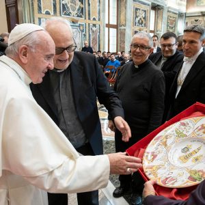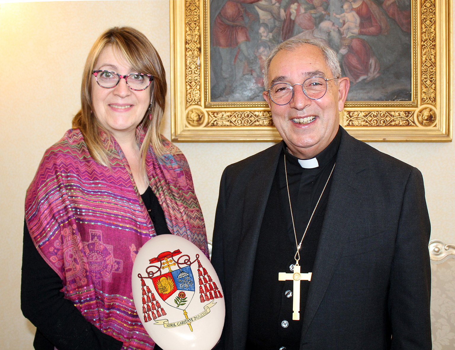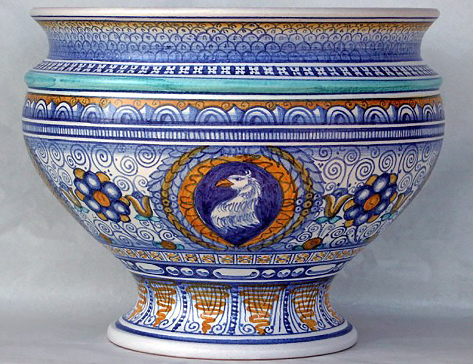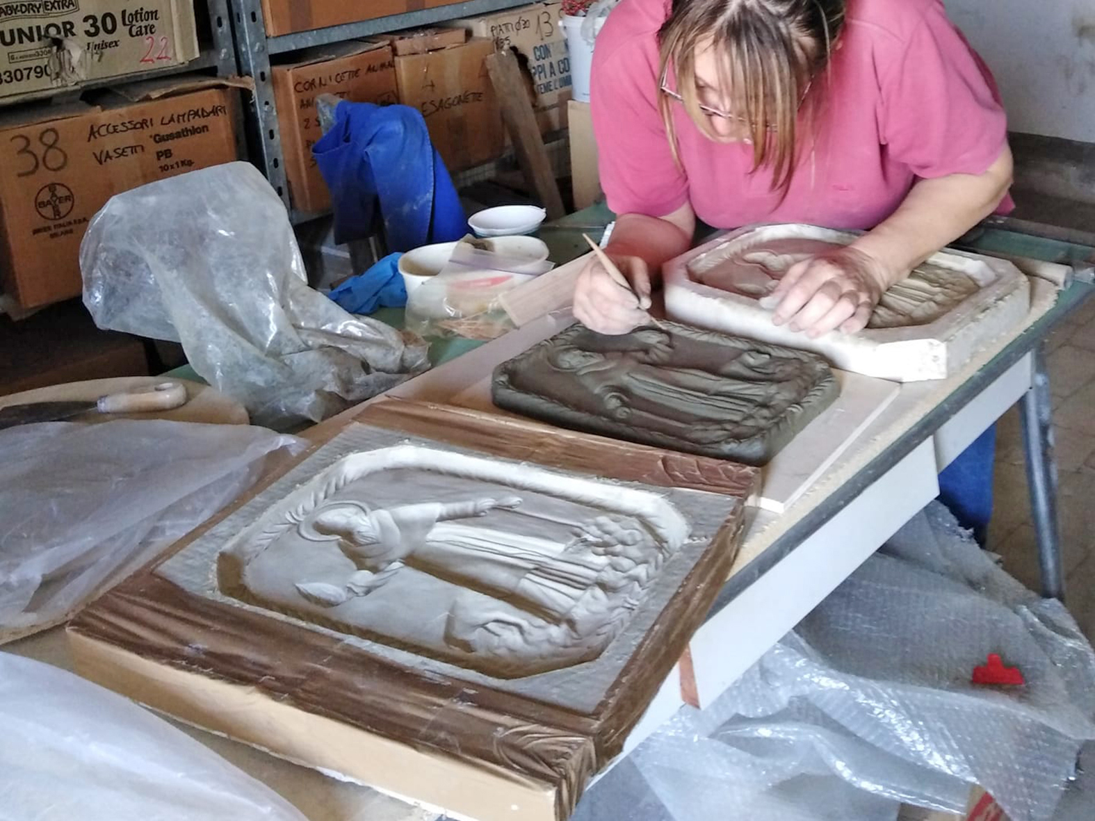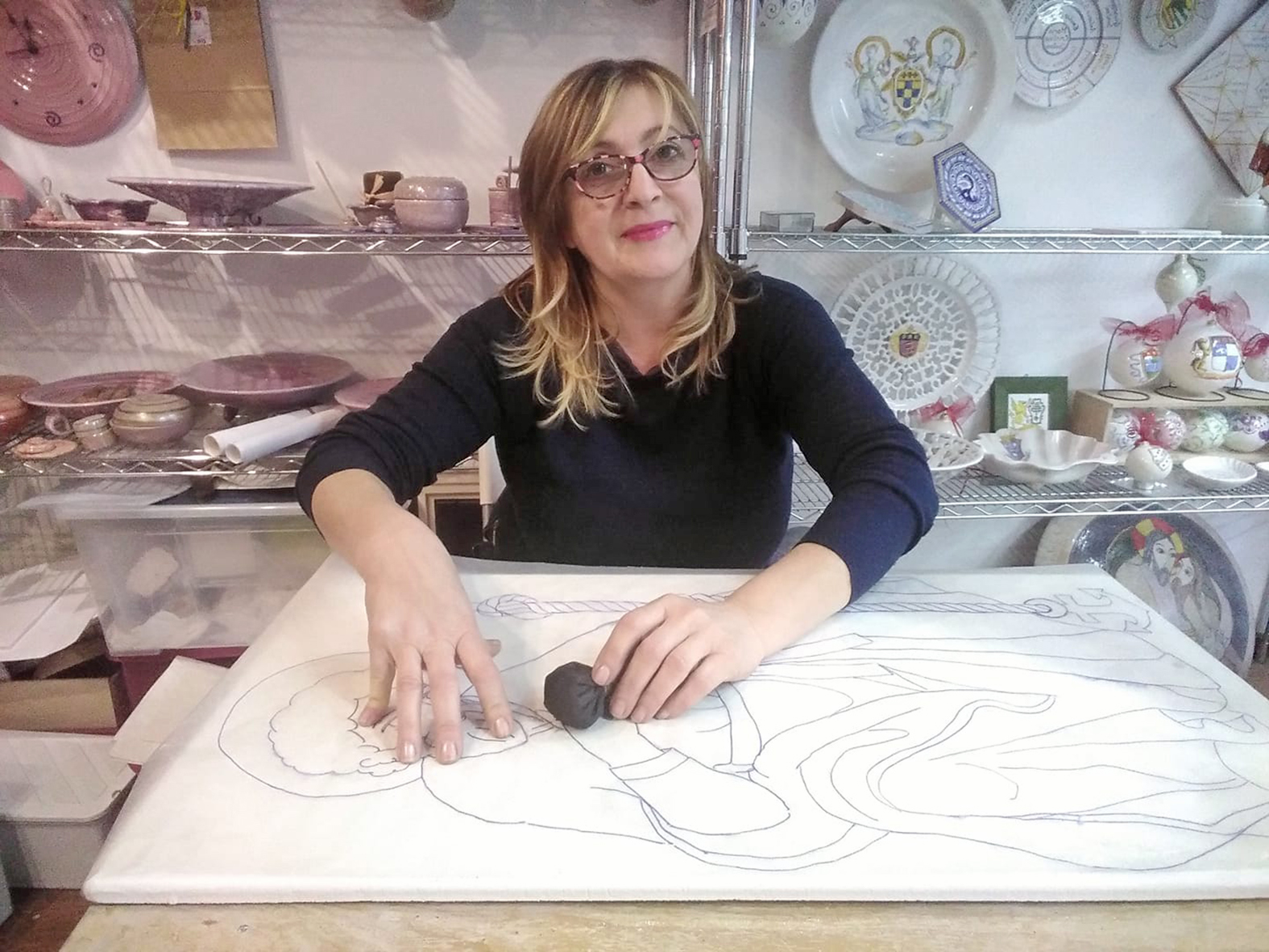 Maria Cristina Sintoni attended “G. Balladrini” Ceramic Art School in Faenza. Being always passionate about heraldry, holy art and Christmas decorations, in 1984 she opened her workshop in the center of the city. Here, she creates unique pieces inspired by her love for tradition and creativity, such as plates, vases and traditional Faentine majolica; but above all heraldic coats of arms and family trees, a field in which she has specialized thanks to her curiosity and love for research and documentation. She deepened this subject studying iconography and iconology at the Italian Institute of Heraldry and Genealogy. Starting from the client’s genealogy and history, she creates ceramic coats of arms for private clients, churches and museums. She founded the “Compagnia Beato Nevolone”, in Faenza.