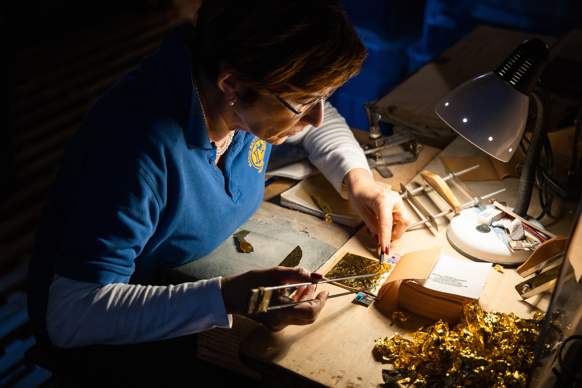 In a historical palace in the heart of Venice, gold, silver and other precious metals are melted with an artisanal technique, which turns them into tiny sheets while barely altering the materials, thus ensuring top-quality products. The sheets are later used by the artists and artisans decorating precious furnishings and major works, such as San Marco’s bell-tower and mosaics or the “Madonnina” of Milan’s Cathedral.