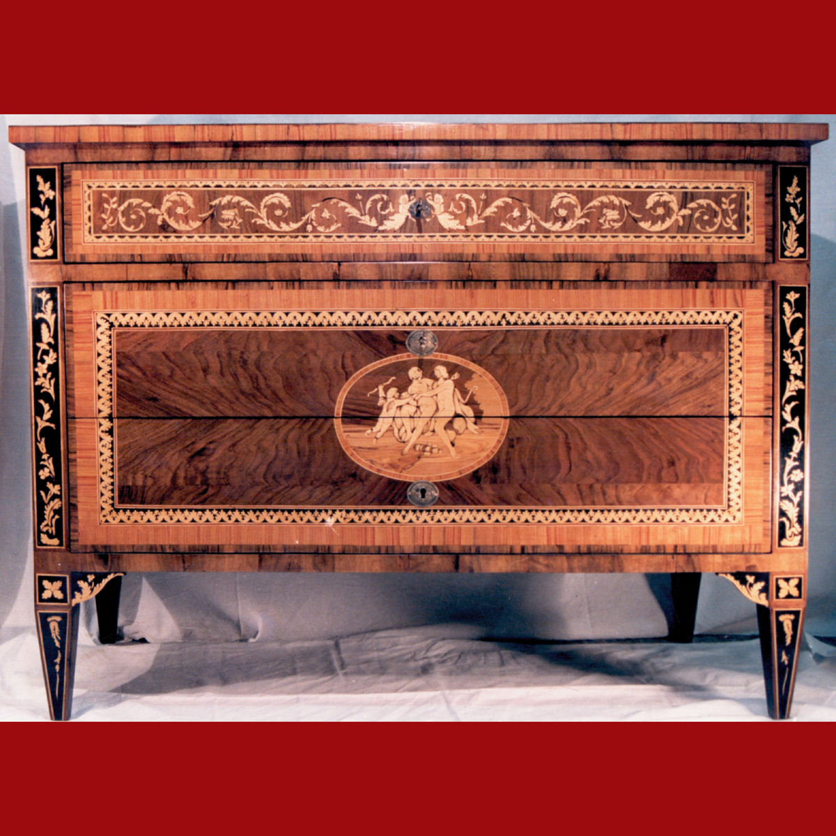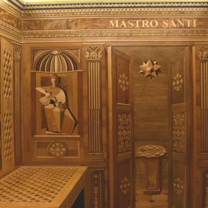 Santi Del Sere is a master restorer and cabinetmaker. After graduating from the Istituto Statale d’Arte in Anghiari in woodworking and restoration of antique furniture, he opened in the same town one of the most important workshops specialise in cabinetmaking. In addition to constructing furnishing items, he also practices the ancient art of wood inlay to decorate his furniture with decorative marquetry panels in the Renaissance style. He also carries out restoration works, gilding and French polishing of antique furniture. He was the first person in the entire province of Arezzo to be awarded the title Maestro Artigiano e Bottega Scuola, in recognition of master artisans qualified to teach and train young apprentices.