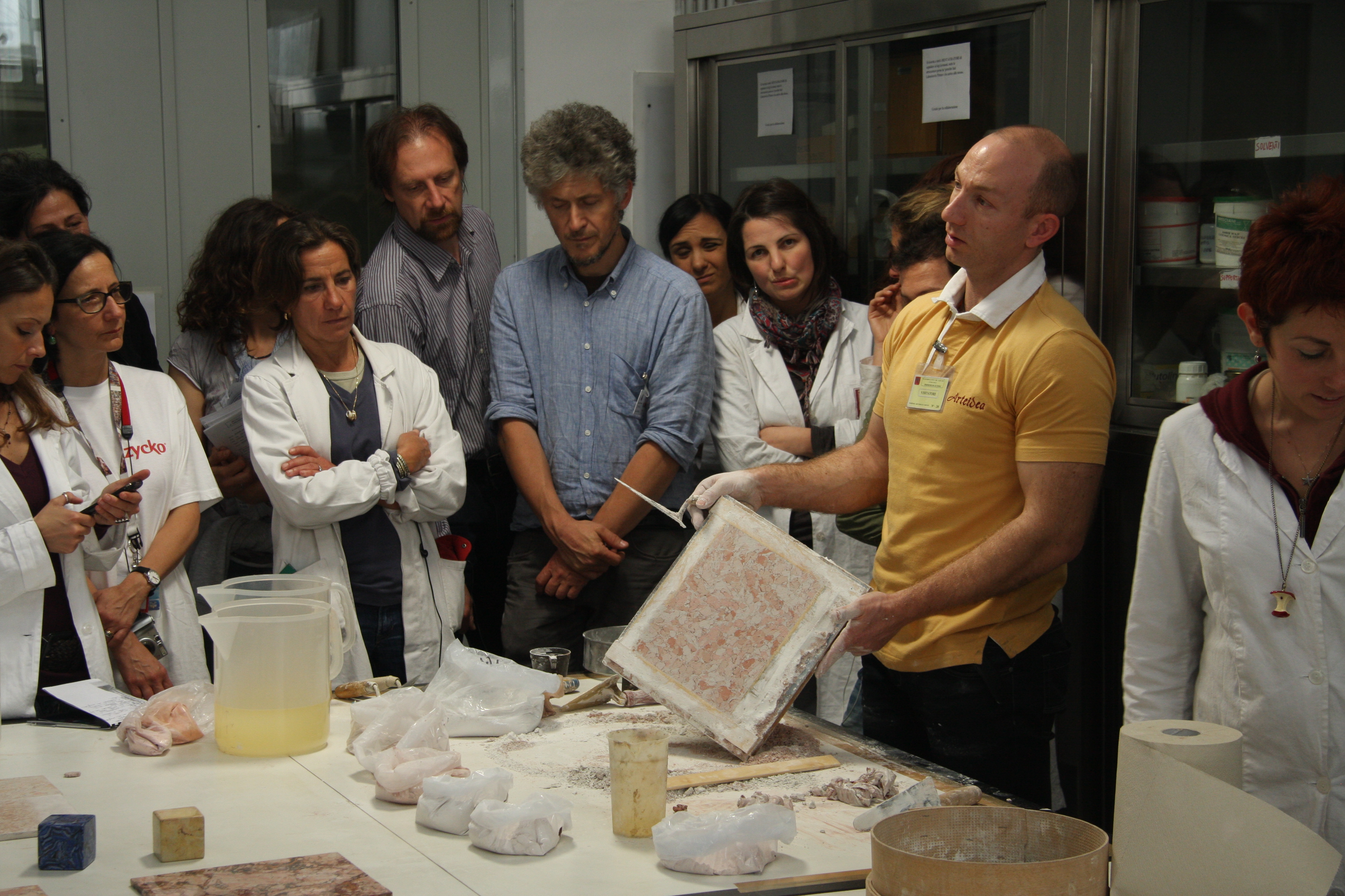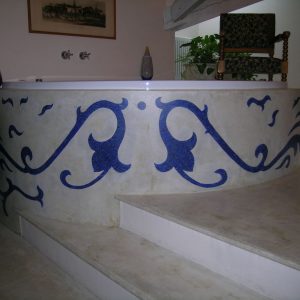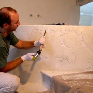 Matteo Libanoro is a Piedmont-based master scagliola worker and decorator. After graduating in 1993 from the Art Lyceum in Novara and in 1995 from the Academy of Applied Arts in Milan, he specialised in creating artificial marbles, created through decorating, painting, airbrush painting, trompe l’oeil and other techniques. In his workshop Artidea opened in 2008 in Gattinara, he creates panels and decorative elements using the ancient technique of scagliola, but also using acrylic, watercolours, graphite and sanguine pencil. This fine craftsman also creates finishings for interiors and exteriors, panelling in waterproof Moroccan tadelakt plaster, smooth stucco and marmorino as well as restoration work on fixtures, frescos and mural decorations. The Piedmont region awarded him the title of “Eccellenza Artigiana”.