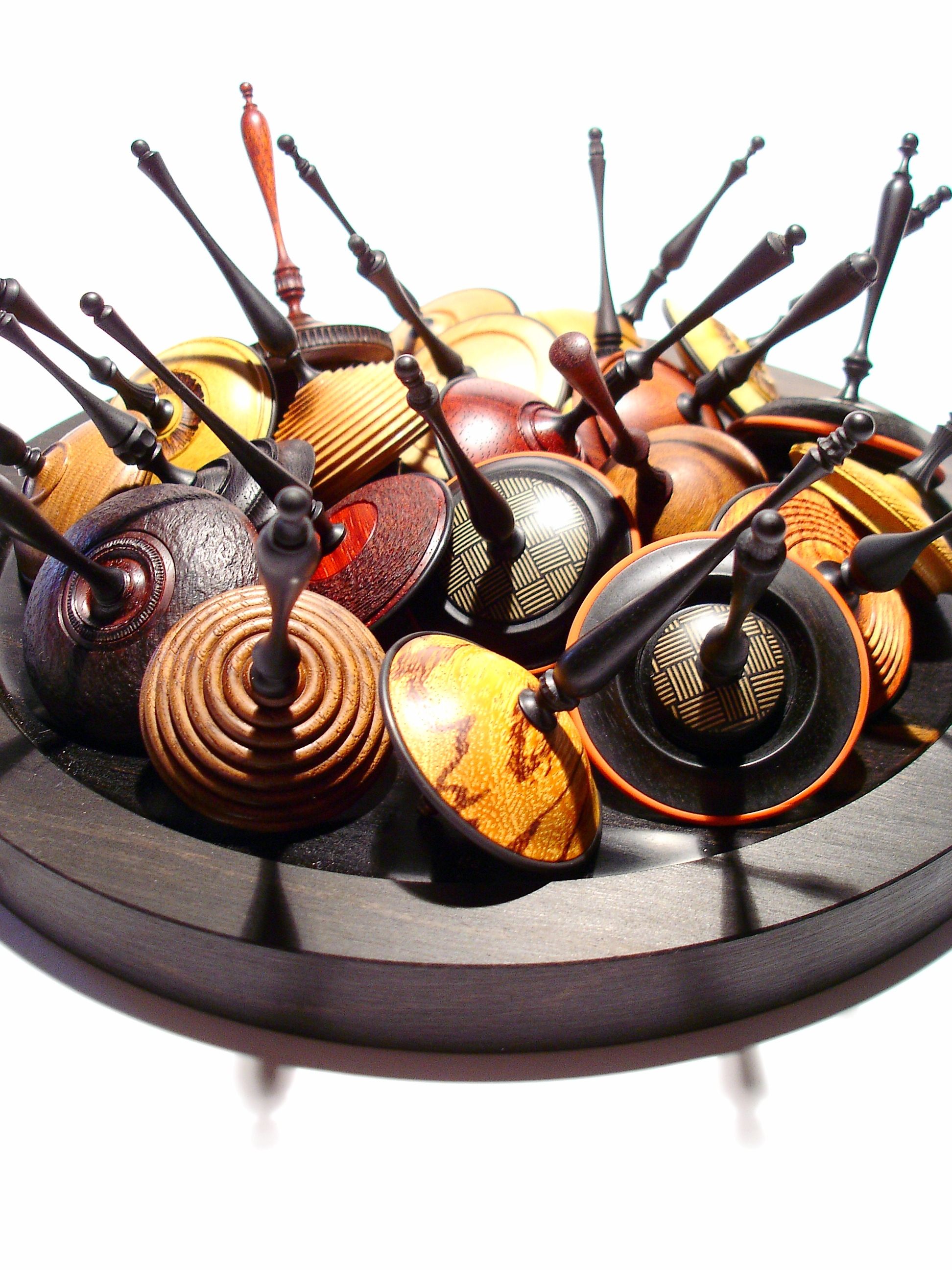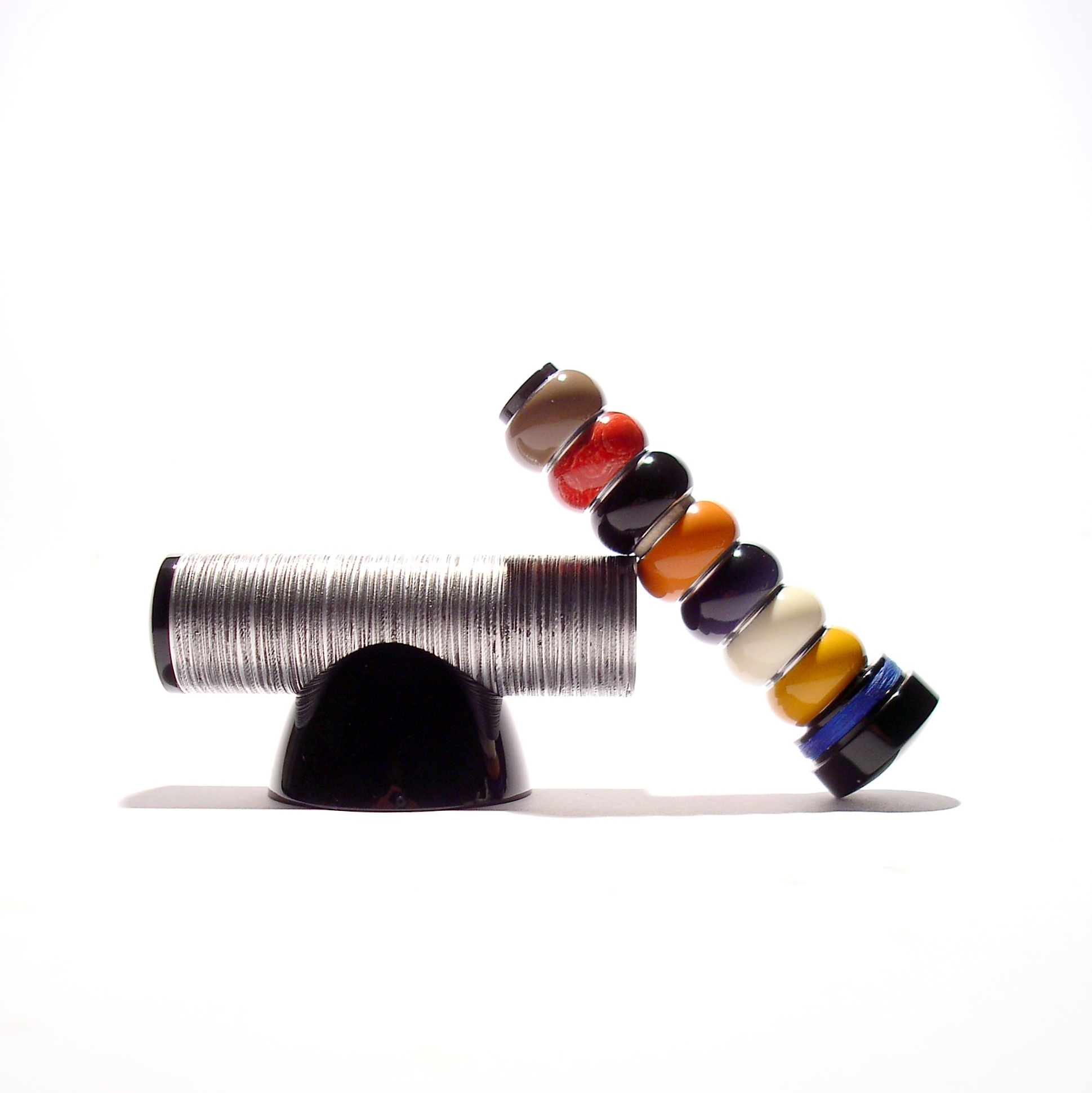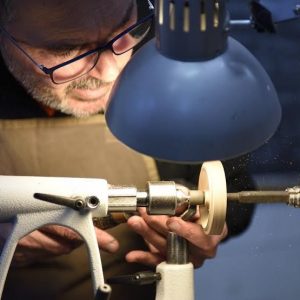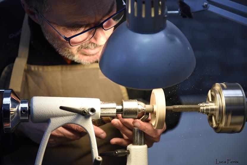 Mauro Sarti graduated as a maestro d’arte from the Bologna Istituto d’Arte with a specialisation in pictorial decoration. After 20 years experience as a designer and project manager in the trades fair sector, his passion for craftsmanship led him to open his own workshop in 2007. Under the brand name Mauby & Wood, he handcrafts refined jewellery, personal accessories, and decorative ornaments from prized woods sourced worldwide. Mauro carefully follows every step in the production, from the initial design to polishing, combining rare and exotic essences, resins, metals and also other materials. His spinning tops are unique and distinctive — the article that started his activity — precious objects for the discerning collector. His creations are exhibited in shops, museum and gallery bookshops and he also holds courses in wood turning and modelling.