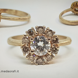 Meda Orafi is a goldsmith workshop operative in Milan for three generations. Founded in the heart of Milan in 1916 by Dante Meda, the studio was already renowned in the 1940s as one of the most important goldsmiths in the city. Following significant experience with leading brands including Cartier, his son Mario took over the running of the family business together with his daughter Miriam who, on completing her studies in architecture, decided to follow in the footsteps of her father by bringing together the tradition of Lombardy goldsmithing with a taste for modern design and the most advanced modelling instruments available. With a commitment to meticulous production, the workshop produces authentic masterpieces of crafted jewellery, thus preserving a rare, ancient and noble trade.