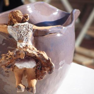 Mogrè is a ceramics workshop in the historical centre of Perugia. Founded and managed by Monica Grelli, an artisan and art therapist, her atelier is both an exhibition space, where she produces and sells her works, but also a meeting place where she delivers workshops in ceramic arts and art therapy. Monica’s production is inspired by the female universe and elements from nature: everyday objects or kitchen items and ornaments portray dreaming and courageous women dressed as pilots or divers. Her ironic yet essential design and the entirely handmade production render her works truly unique. Monica pays particular attention to more disadvantaged subjects and uses her knowhow to encourage greater wellbeing and growth to the territory through working in clay.