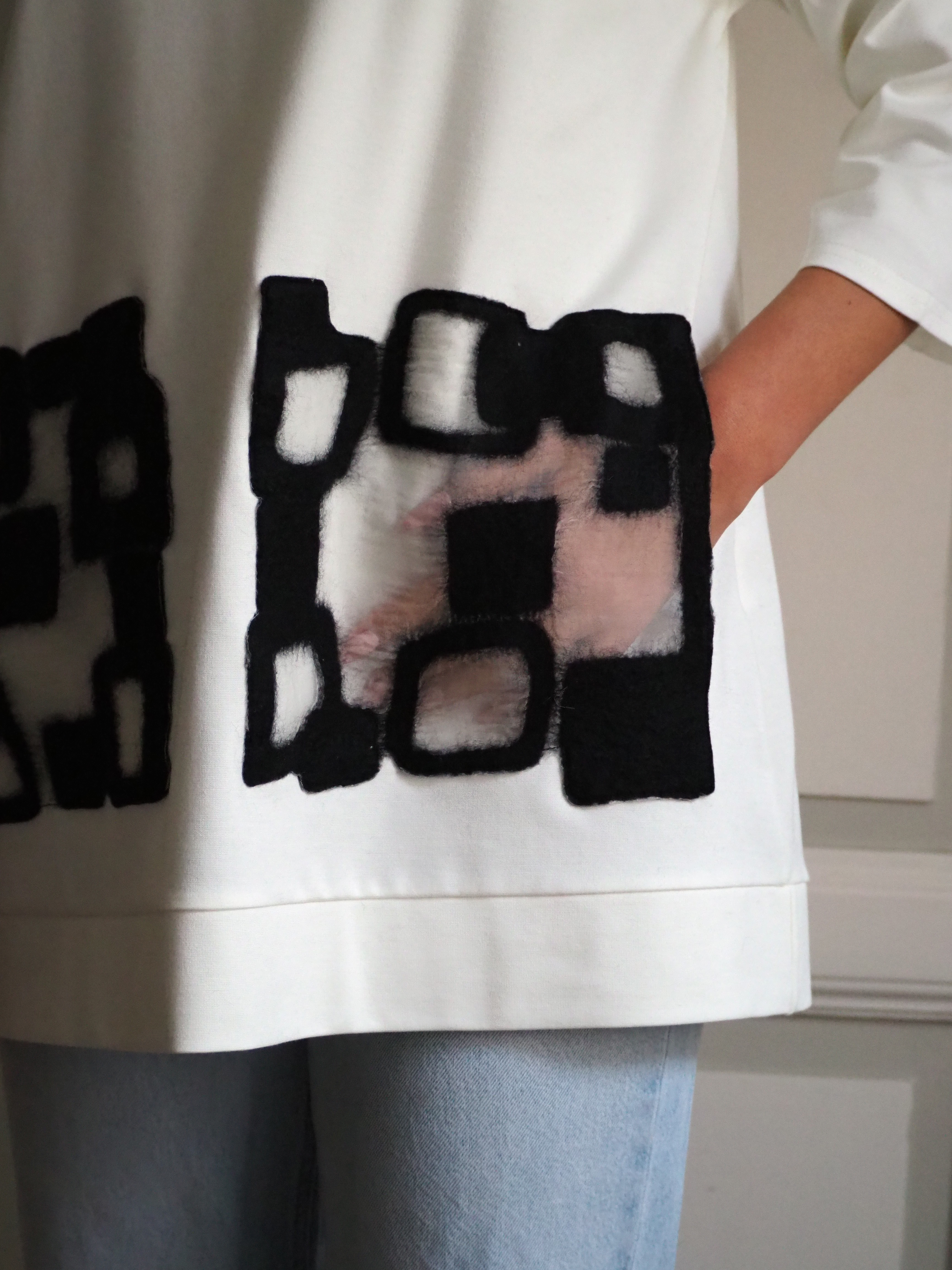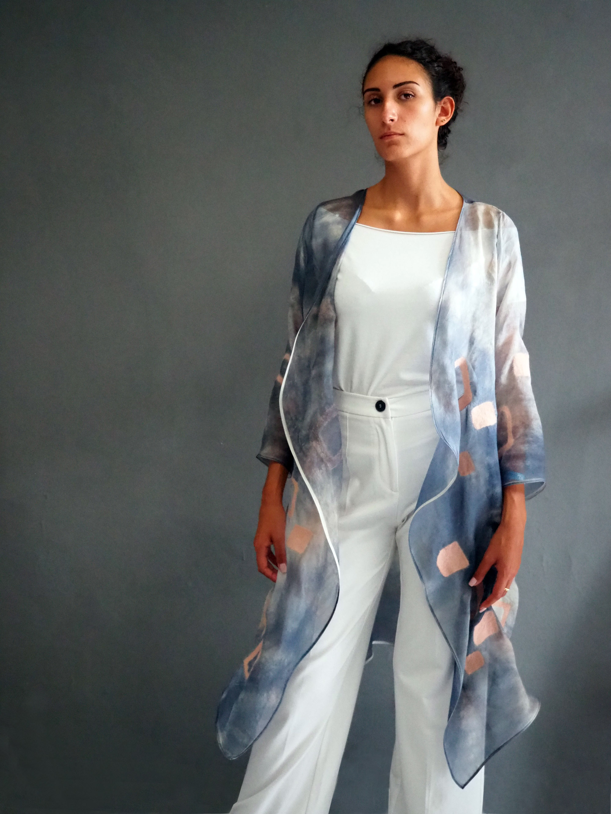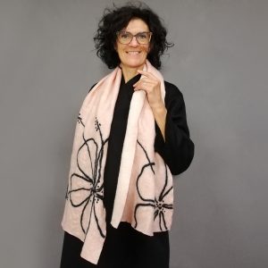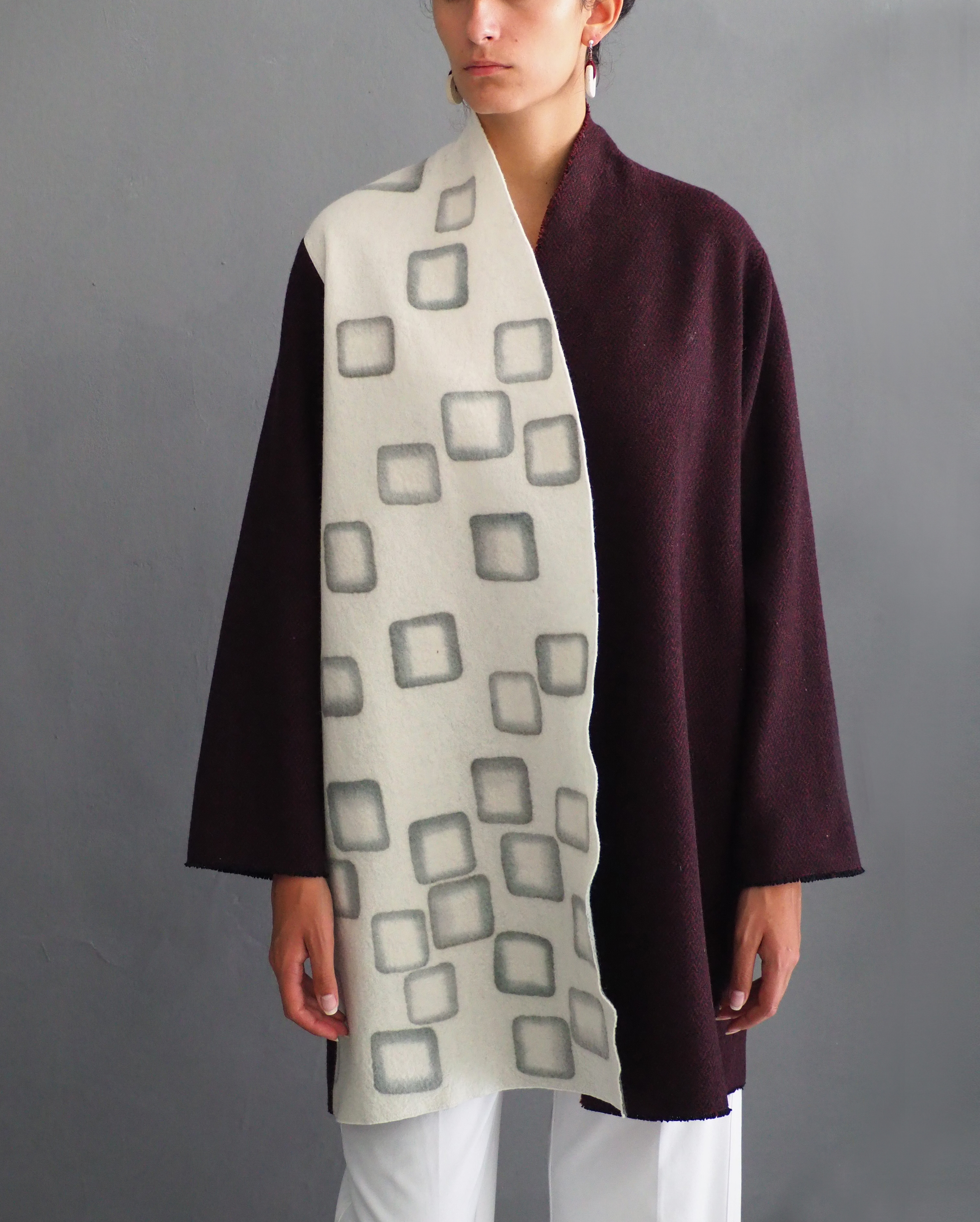 Nuno Milano is a brand of fashion accessories founded by Nadia Bonamici, artisan and designer specializing in textile products. She creates scarves, foulards, jackets and other garments in seamless and completely handmade “nuno felt”, by using the peculiar and little-known technique of felt. After a long career in advertising, Nadia discovered her passion for fabrics and craftsmanship, and decided to give life to her project. Today in her workshop and showroom in Milan, in the Bovisa district, Nadia combines wool, silk, viscose and natural fibres with water and soap, thus turning them in precious wearable fabrics and creating elegant and refined garments in “nuno felt”. Her fabrics are textured and sensory, smooth and rough, light and heavy at the same time: they are made to be touched indeed, before being worn or looked at.