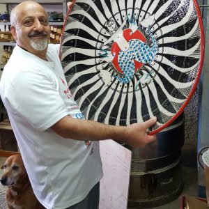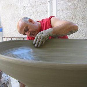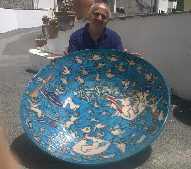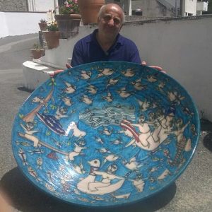 Pasquale Liguori is a master ceramicist from Raito near Vietri sul Mare, a small town on the Salerno Coast famous worldwide for its splendid ceramicware. At a very young age he started to study the techniques of ceramic making, including wheel throwing and decoration. Operative since 1975, he immediately started experimenting by combining enamel glazes with various components with different characteristics and the application of metallic glazes to produce works that are truly unique. In his workshop, Pasquale creates hand thrown ceramic objects such as table decorations as well as plates of over one metre diameter. Some of his works are exhibited in renowned museums including the Museu Cargaleiro in Castelo Branco (Portugal) and the Museo Nacional do Azulejo in Lisbon.