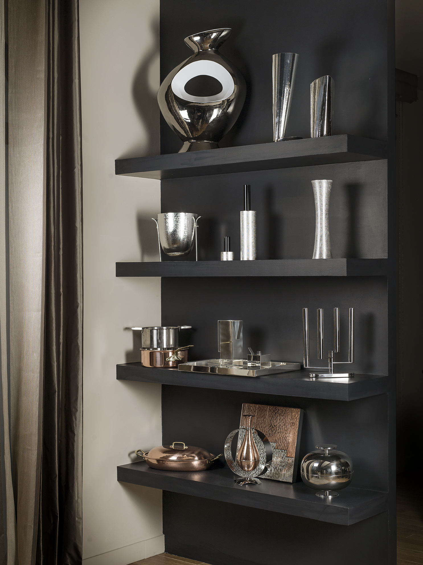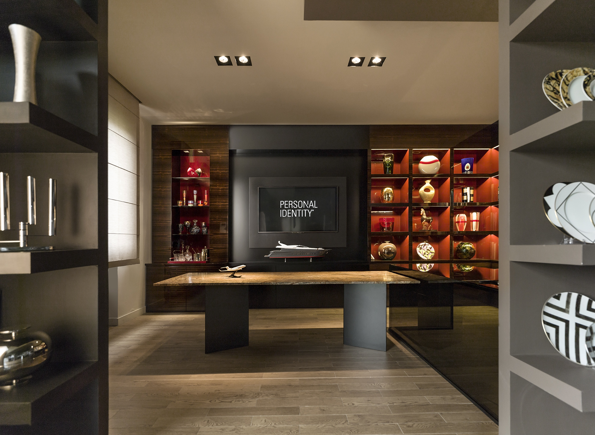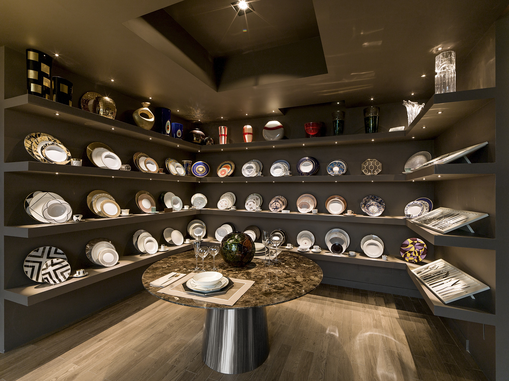 For over 20 years Personal Identity has designed projects for interior decoration and furnishing, offering high range personalised solutions for private residences, superyachts, private jets and offices. In the elegant and spacious showroom in Parma, there is a wide range of furnishing accessories and decorative elements of all kinds on display: porcelain, crystalware, silver tableware, objects in leather, linen and other design objects all created by qualified craftsmen to offer the client a “one-stop-shop” experience and a single point of reference for every possible necessity in interior or exterior decor. Personal Identity also offers consulting services and designs on request one-off pieces and high range crafted pieces and delivers its products worldwide.