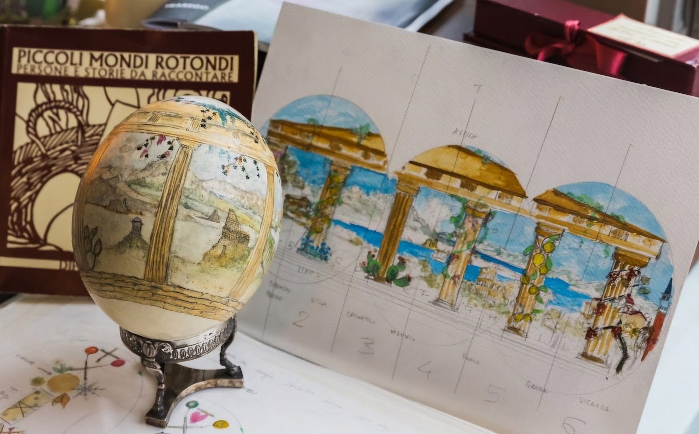 Orsola creates the Little Round Worlds on commission. Stories of cities, scenery and natural landscapes are painted and told on egg shells and Christmas boules. Each object is then placed on a pedestal, transforming it into a refined decorative element and a special gift for the recipient.Orsola Poggi has exhibited her unique, handcrafted products at various exhibitions and in the bookshops of important museums, such as the Museo del Novecento and MUDEC in Milan. Her achievements include winning the ‘Women for Expo’ competition in 2015, in collaboration with Di Donne, Confartigianato, Milan section, and first prize in the Ovopinto Competition in Civitella del Lago in 2017.