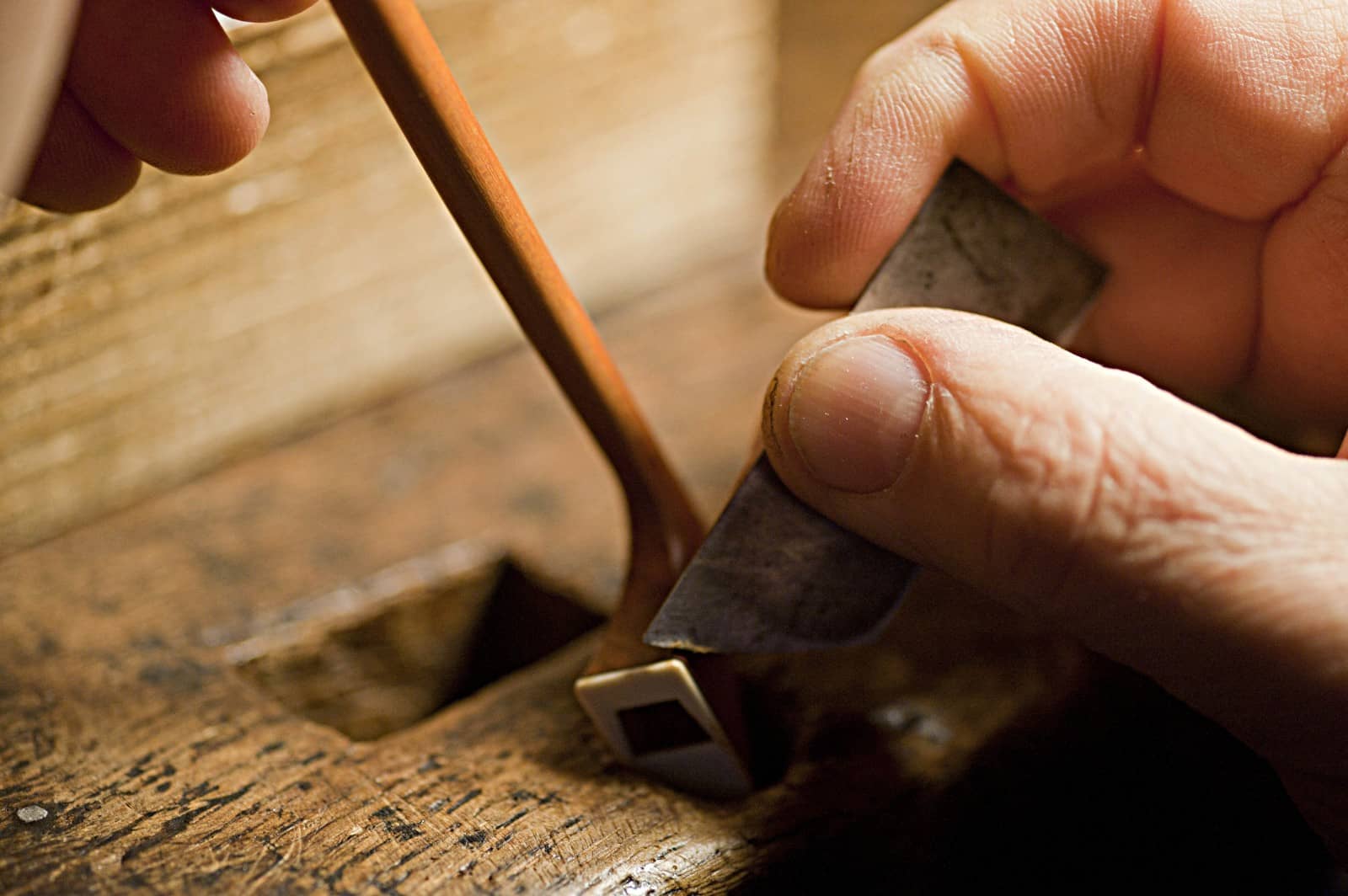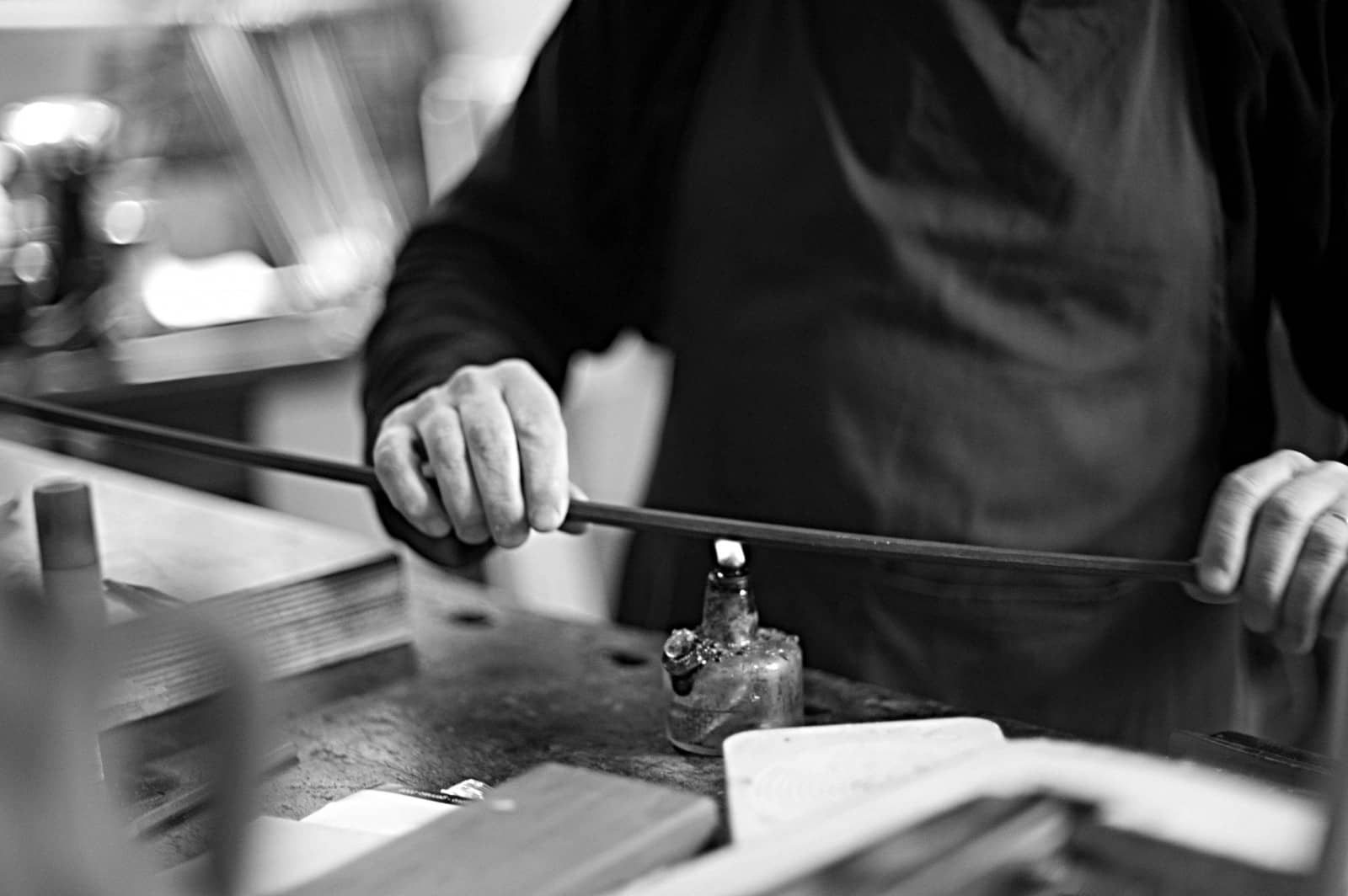 Each bow is a unique creation joining aesthetic sensibility and utmost functionality, in order to respond to the needs of students, music masters and renowned musicians. His signature is accompanied by the unmistakable symbol of Milan’s Duomo on the frog. Besides working in his workshop, he also teaches at the prestigious Civica Scuola di Liuteria in Milan.
