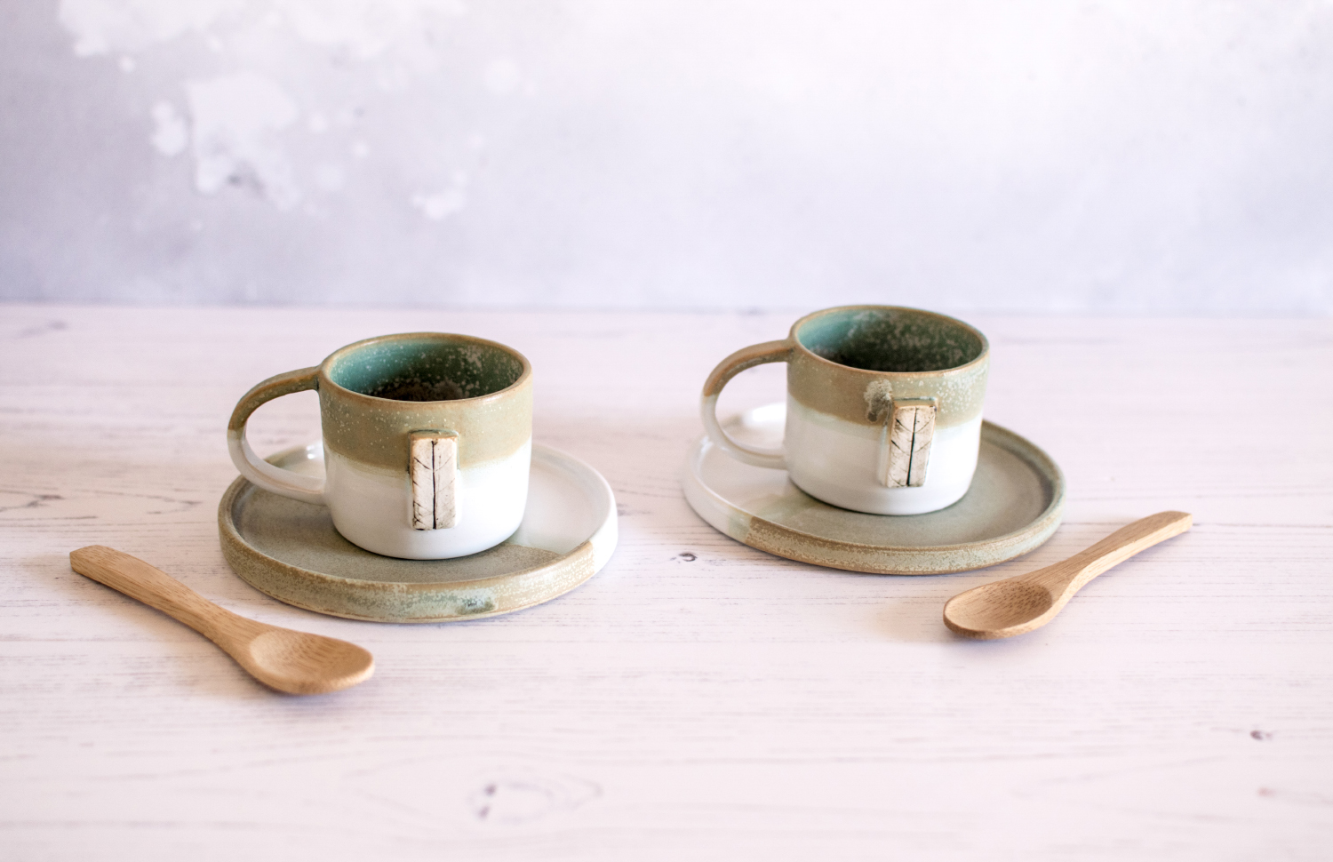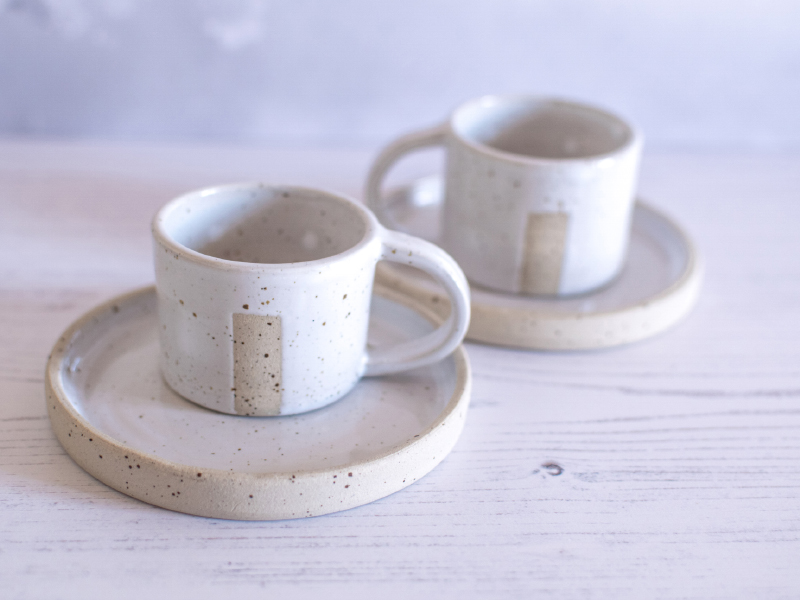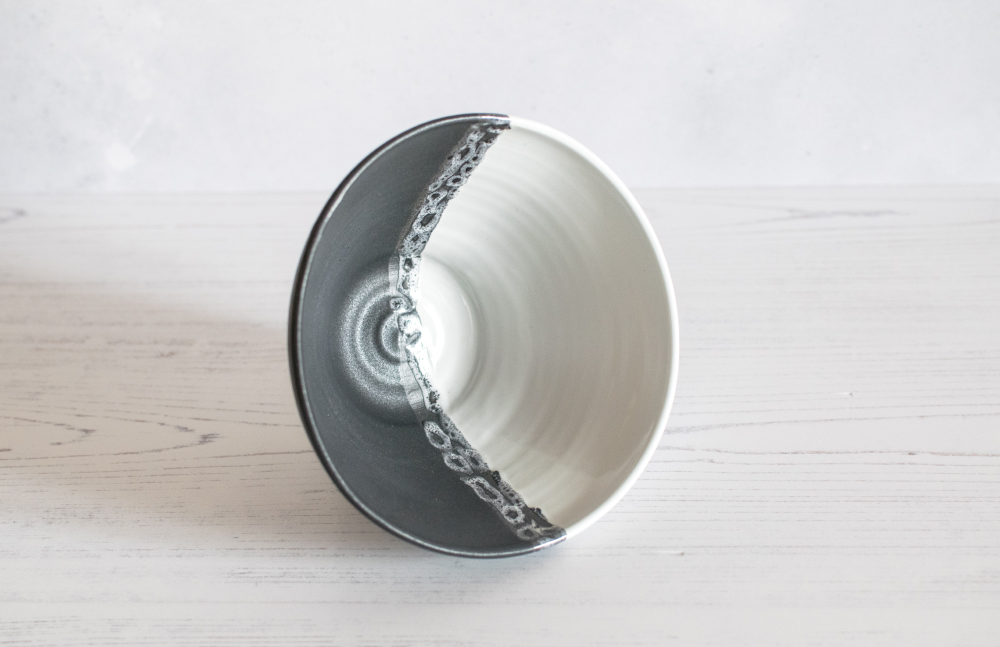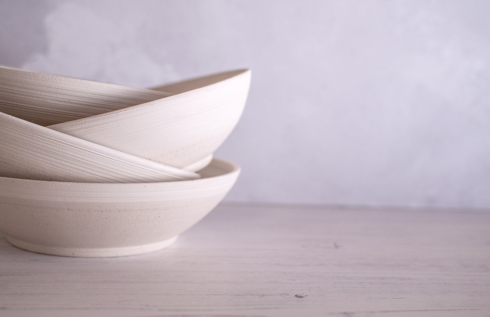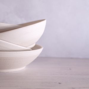 Massimo Bertin has been working clay for more than 10 years: he started, almost by chance, by discovering the Raku technique. This is when his journey into experimenting with different techniques and materials started. Recently in collaboration with the Primo Fuoco workshop in Lonato del Garda near Brescia he left his job as an IT technician to transform his passion into a true profession by becoming a ceramic artist. His preferred technique is the potter’s wheel to make stoneware objects: today he produces everyday objects, kitchen and table utensils such as glasses, cups, plates, and bowls which he decorates with simple motifs and glazes. His work has a very simple and minimalist style and inspired by Oriental cultures while each article is handcrafted and unique. He also holds courses in basic ceramics and the use of the potter’s wheel in his workshop.