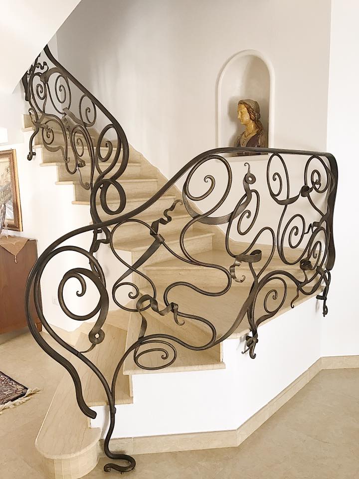 Qalea is a traditional company founded by Daniela Iraci, a craftswoman skilled in metalworking. Daniela learnt her art in the workshop of her father Salvatore, the owner of a metalworking workshop inherited from his grandfather who founded it in 1928. Follow family tradition, Daniela today proposes a range of products that express her deep understanding of craftsmanship, contemporary innovation and feminine sensitivity by creating bannisters for stairs and terraces, gates and other decorative furnishing accessories in a wide range of styles: Art Nouveau inspired floral motifs but also geometric or more classical style, or even a minimalist and modern line. Daniela also undertakes restoration work for lamps and other metal objects.