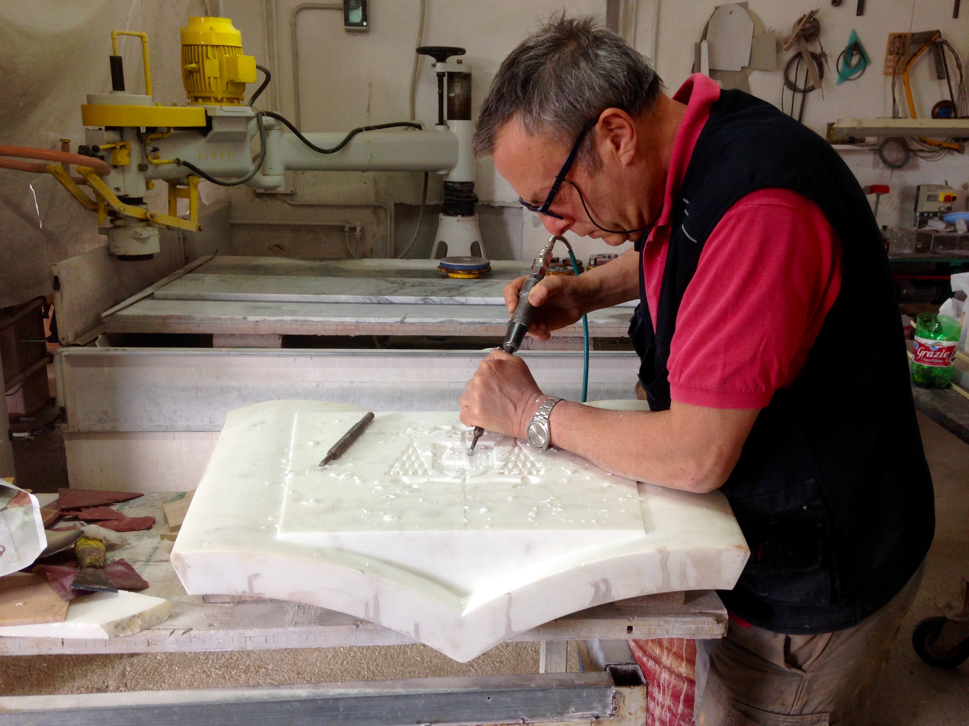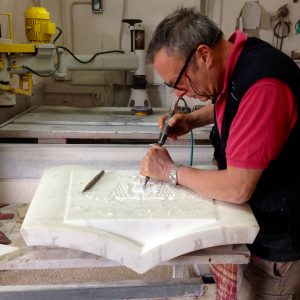 The Sorrentino family has been active for over three generations in the restoration and production of artistic stonework. Initially, the founder Vincenzo transmitted his trade to his son Carmine, while today it is the grandson Raffaele who continues the activity of the atelier Maestranze Napoletane. The laboratory in Via Nuova Toscanella, specialised in marble inlay work, has a vast range of objects created by a team of skilled craftsmen also including Raffaele’s children: stone marquetry works, furnishing elements, ornaments, sculptures, floorings and wall panels. The workshop is distinguished for its meticulous attention to detail and its preservation of traditional techniques, finest quality materials but above all, the skills of the craftsmen who work there. Raffaele Sorrentino was awarded the title of Maestro Artigiano in 2015.