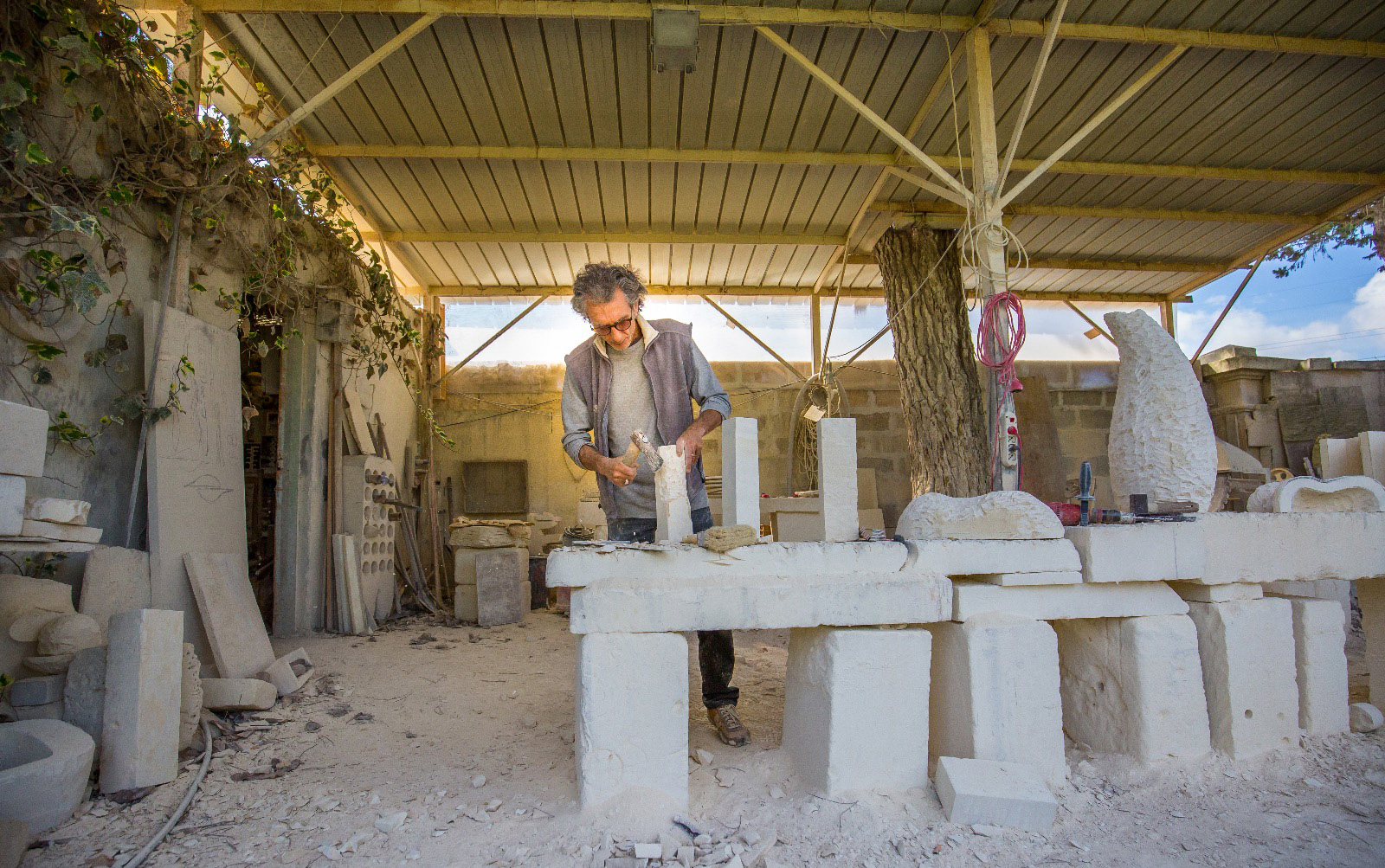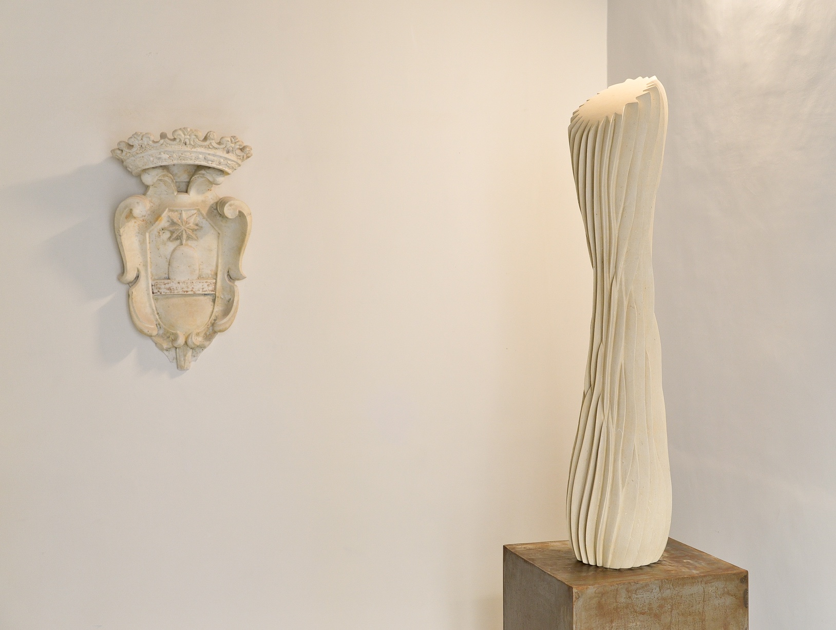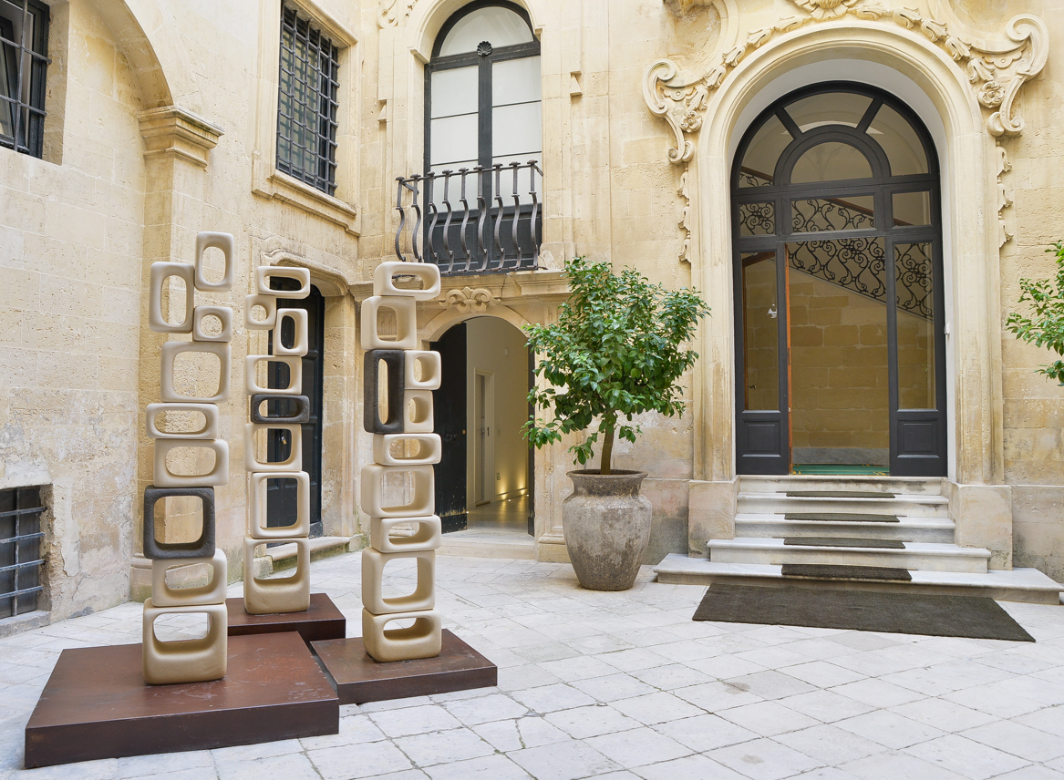 The Lecce stone is characterised by magnificent aesthetical properties and easy workability. The stone is a peculiar element of baroque architecture. Renzo Buttazzo is one of the best manipulators of this extraordinary material. Long research and experimentation allowed him to create a unique style, combining his dexterity with a strong innovative attitude. The qualities of the stone enhance his sculptures and design pieces, by giving the shapes a sense of lightness and softness. His creations are either one of a kind or replicable. The sizes of the replications are variable in order to adapt to any domestic room.