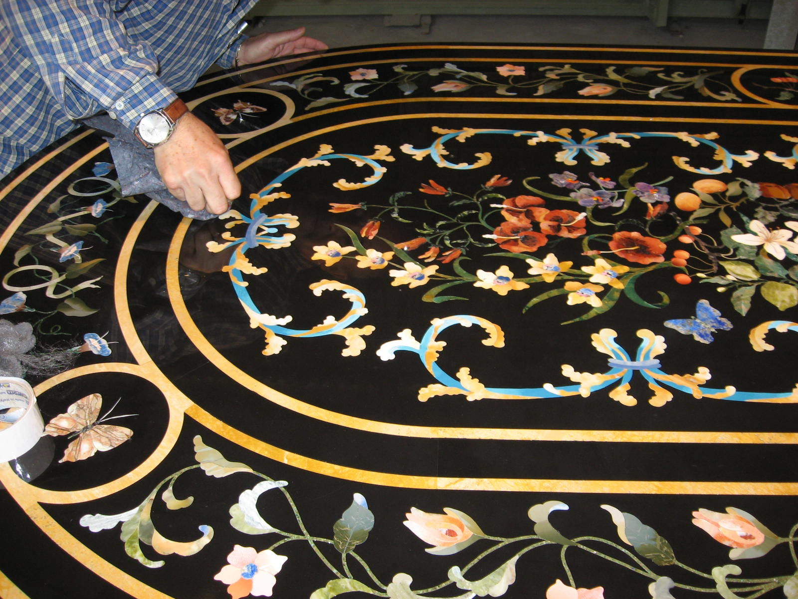 Scarpelli Mosaici is a craft workshop located in the heart of Florence, founded by Renzo Scarpelli after completing his apprenticeship in the mosaic workshops of the city. Initially the business was based in the suburbs and Renzo mainly dedicated himself to creating “commesso Fiorentino”, a traditional Florentine mosaic technique, and selling artifacts and mosaics together with his wife Gabriella.