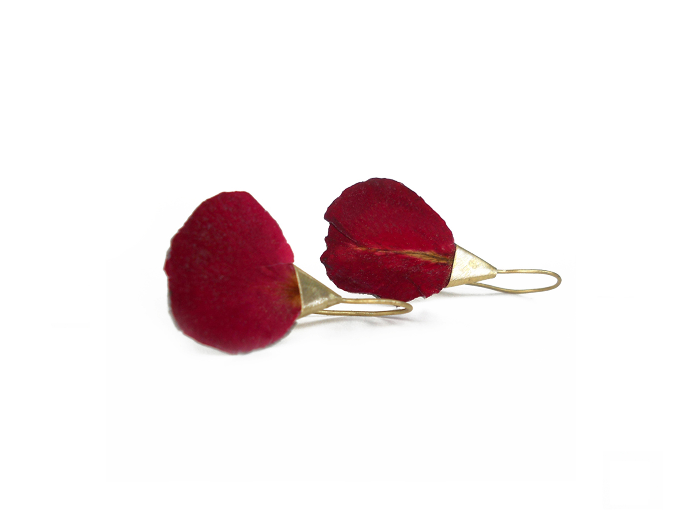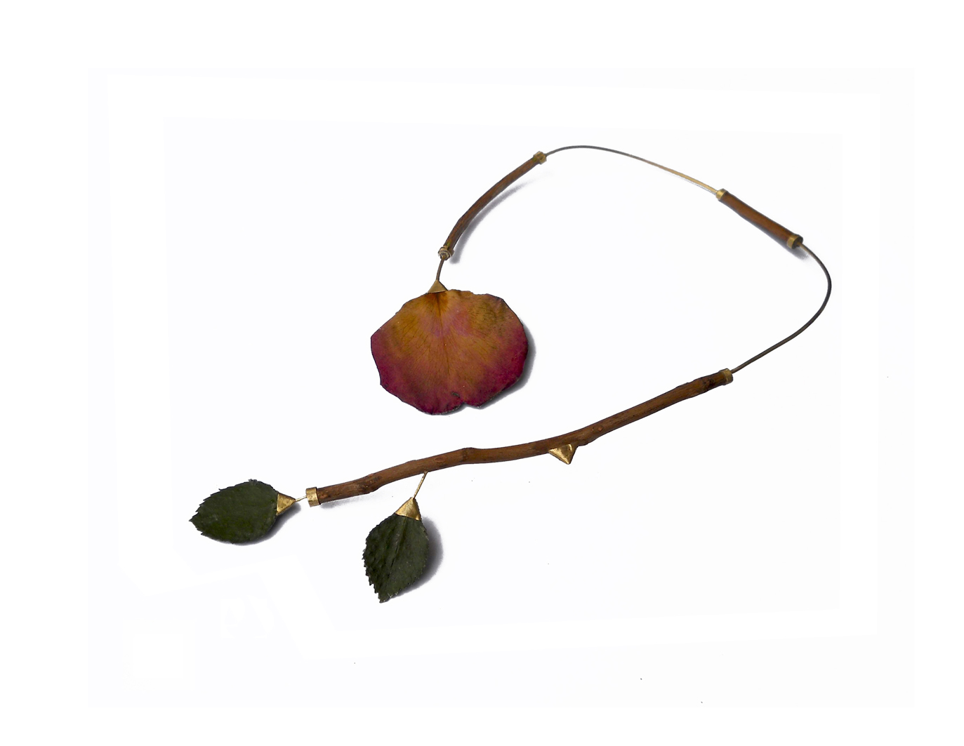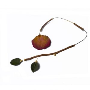Simona Rinciari is an artist and artisan, born in Sicily but working and living in Emilia Romagna. Combining her passion for art, anthropology and botany, she gave life to her artistic project: creating sophisticated jewellery pieces using plant materials. Organic elements such as leaves, roots, fruits, flowers and vegetables are treated with a special technique, developed by Simona herself, in order to preserve their beauty, colours and smell intact and unaltered in time. Entirely handmade and enriched by precious metals such as 21k or 24k gold, silver or brass, these natural micro-sculptures keep a delicate balance between the material world, the aesthetic world and the spiritual realm. Simona Rinciari ships her creations all over the world and her work has been showcased all around Italy and Europe.