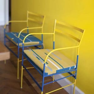 Under his brand Sotow, he designs and creates tubular metal chairs, interpreting the sport world in colours and materials.
