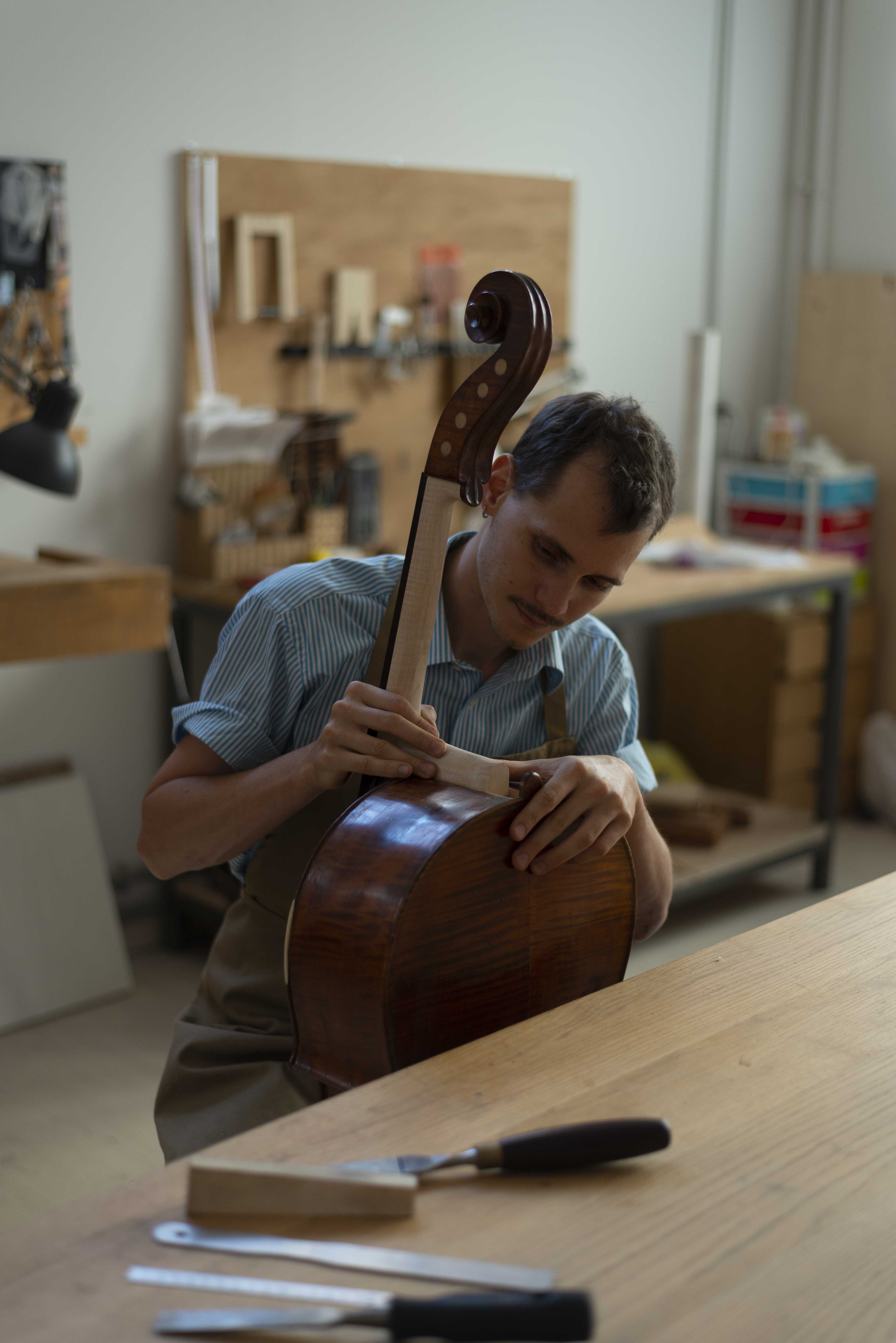 Stefano Bertoli è un giovane maestro liutaio. Dopo il diploma alla Civica Scuola di Liuteria di Milano nel 2014, inizia un tirocinio nella bottega del maestro Carlo Chiesa, da cui apprende le tecniche di costruzione artigianali e lo studio e ripresa dei modelli classici degli strumenti musicali. Poco dopo apre il suo laboratorio a Milano, dove oggi costruisce strumenti ad arco e realizza interventi di verniciatura e restauro interamente a mano. Nel 2017 ha frequentato un corso di scultura su legno, per la creazione e l’intaglio della testa degli strumenti. Ha inoltre partecipato al Concorso Triennale di Cremona nel 2018, anno in cui inizia a insegnare verniciatura e restauro alla Civica Scuola di Liuteria di Milano.