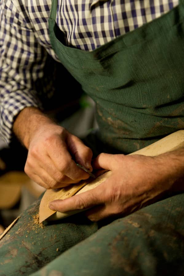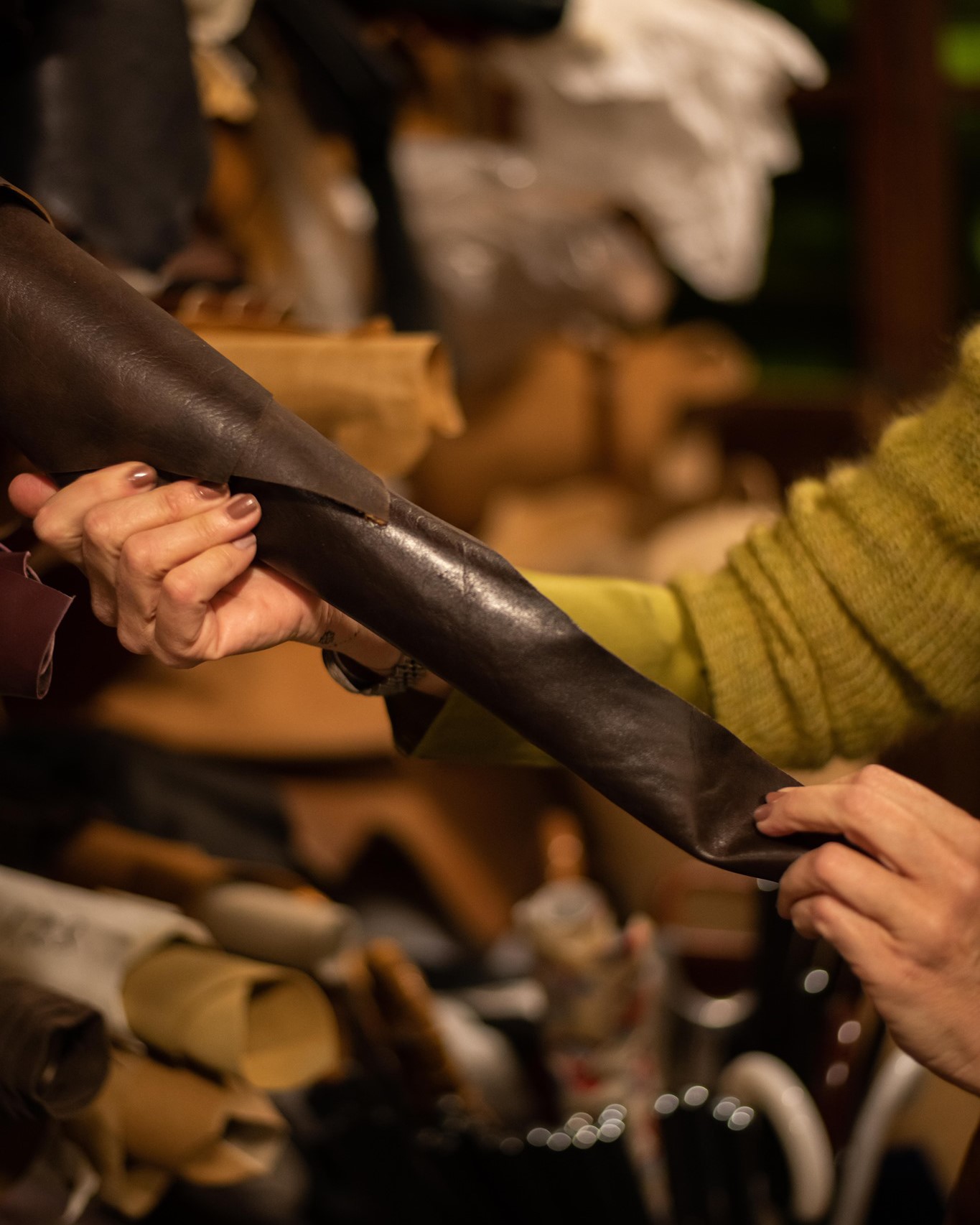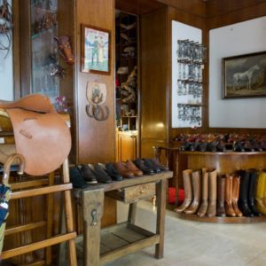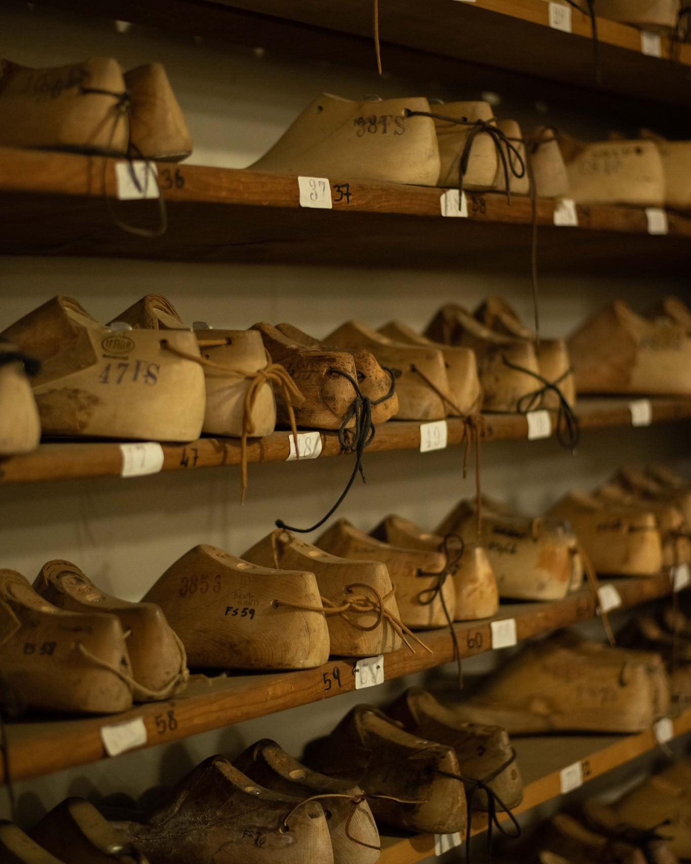 On the ground-floor craftsmen are working in full sight, totally by hand: one pair of shoes requires at least 50-hours’ work. In the underground, a vault hosts a number of wooden moulds, spanning at least 50-years’ activity, which have given shape to several articles, from hunting and riding boots to city shoes and the more recent saddlery and leather pieces.