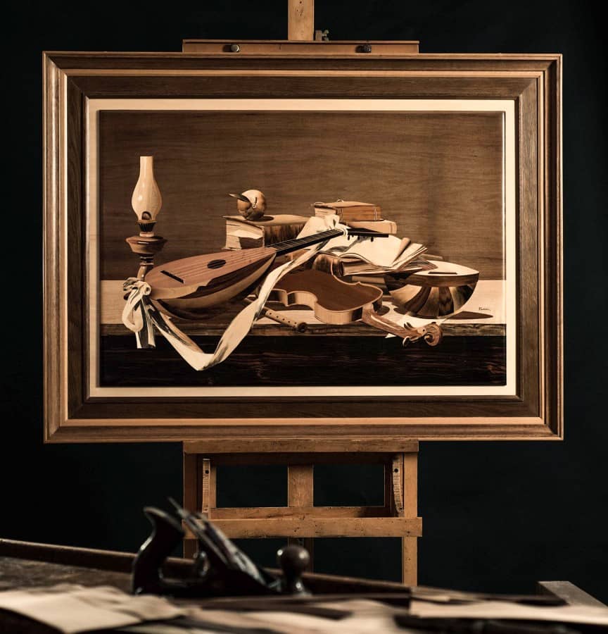 For half a century, Anagni-based Tarsie Turri have been creating wooden inlay pictures and panels. Their founder, Carlo Turri, has passed on his masterly craftsmanship to his daughter Rita, who is continuing this precious inheritance.