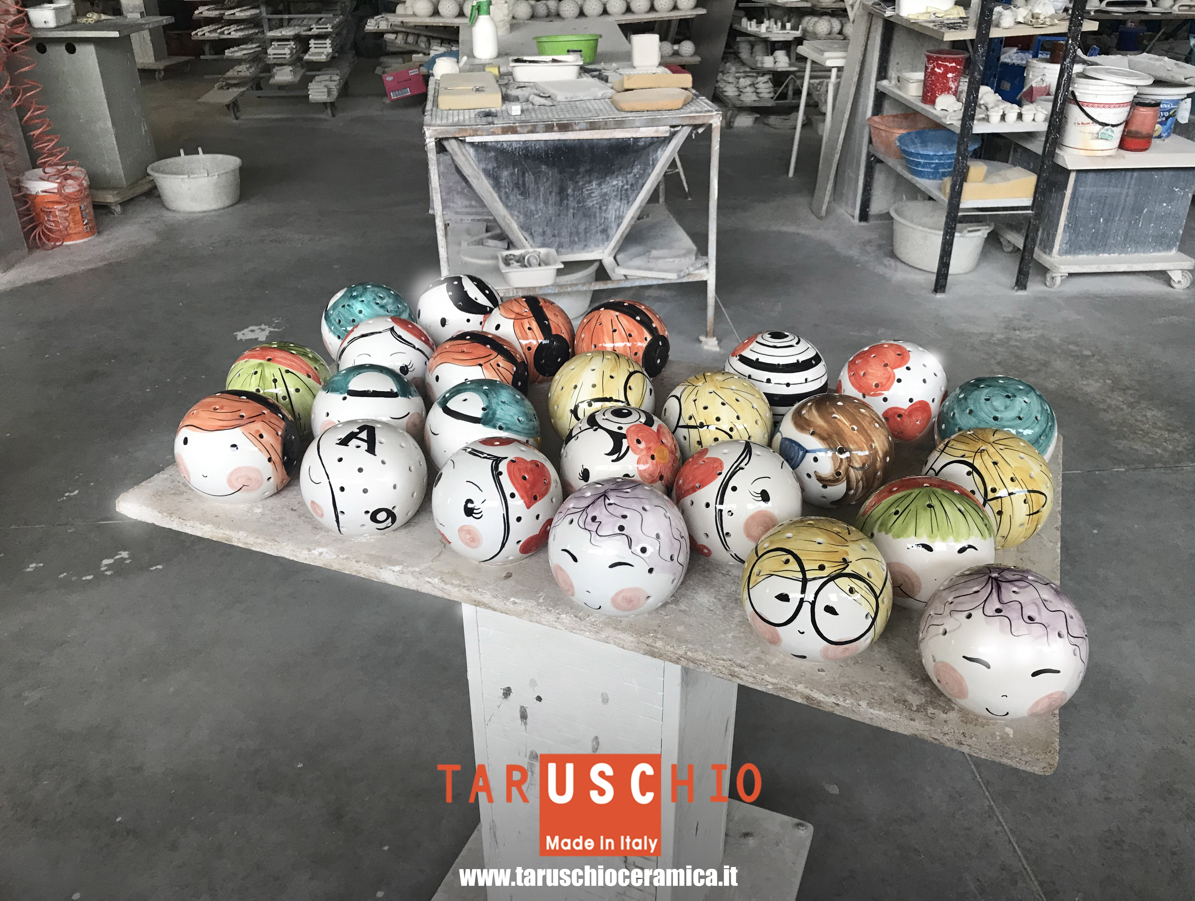 Taruschio is a ceramic workshop located in Appignano, a small town near Macerata renowned for its majolica production. The workshop was founded in 1980 with the purpose of keeping the ceramic tradition alive, while at the same time embracing the technical and aesthetic challenges of contemporary times. Here, white clay artefacts are hand-crafted, then fired and hand-decorated: decorative items and furnishings such as clocks, perforated lamps, plates and ornaments, are made in many different styles. These artisans’ vast experience allows them to master the various techniques and secrets of the trade: Taruschio provides a wide choice of objects and collections, either inspired by tradition – such as the Sicilian Moorish heads or the Apulian “Pumi” lucky charms – or more playful and contemporary design items.