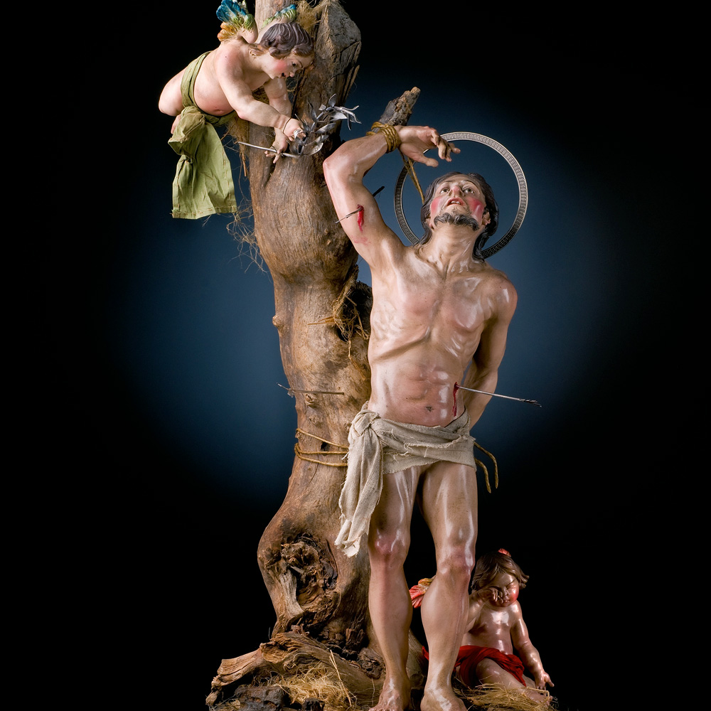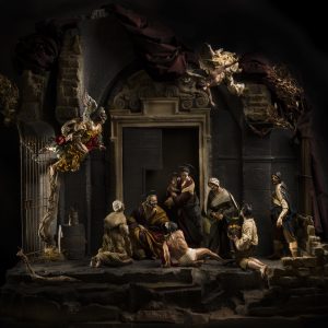In Ulderico Pinfildi’s workshop in Via San Biagio dei Librai, one will find the real art of Neapolitan Christmas cribs. Ulderico grew up in a family of clay artisans, and he started to create Christmas crib figures at a very young age. For a real artist a piece of clay, a support and skilled hands are enough to create a character, that is, as he states, “like a son that brings with himself all his birthright”. The classical 18th-century Neapolitan Christmas crib, set in the centre of Naples, must be appreciated in all its extremely realistic details. The clothes are made of valuable silk, in the style of the 18th century, and the characters have expressive faces and dramatic poses. The real masterpiece is the “Seven works of mercy”, made with an extreme realism that recalls Caravaggio.