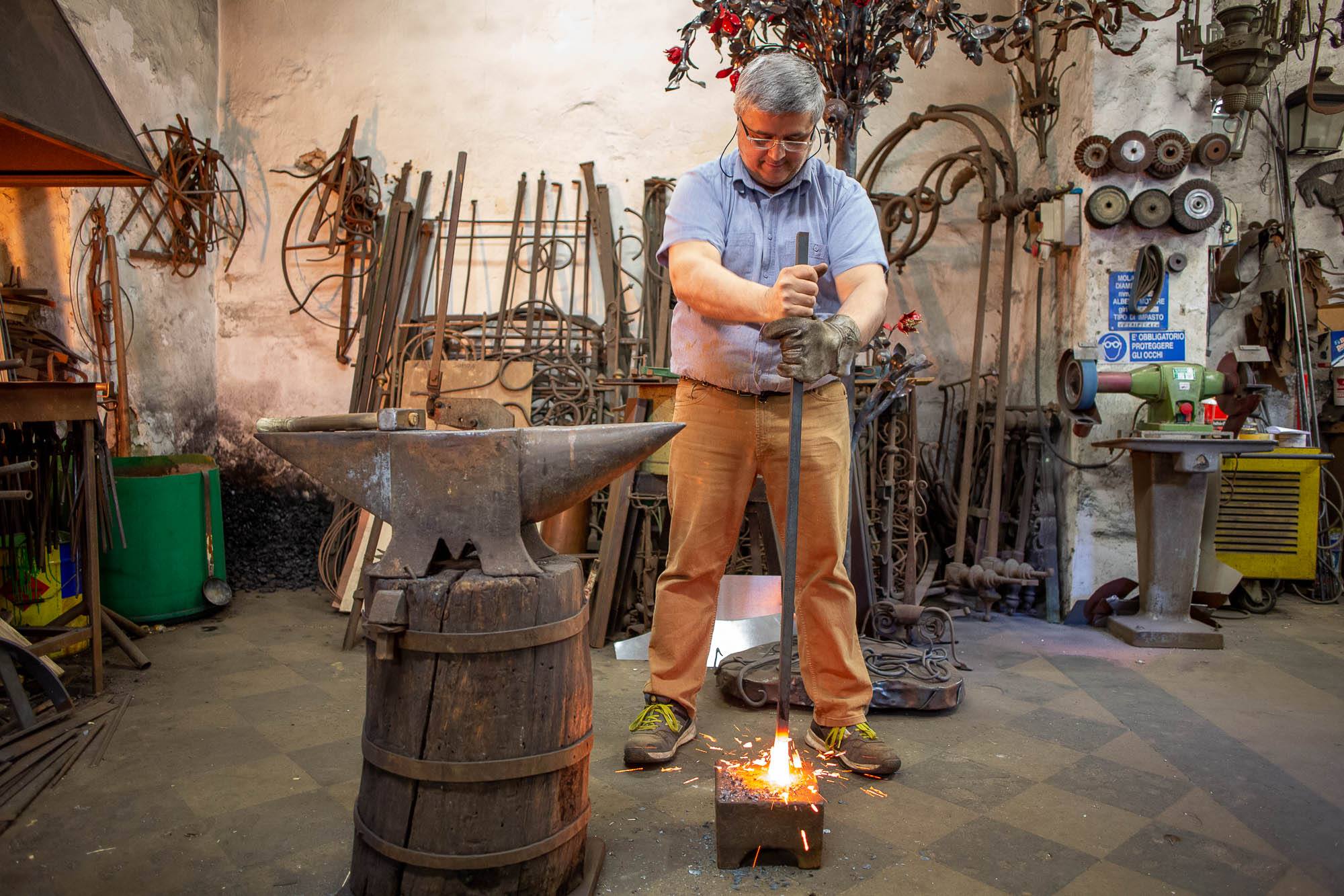 Today the production, which is still entirely handcrafted, is carried on by his son Enrico, and it is focused on the creation of wrought iron home and outdoor furnishing accessories, such as chandeliers, custom-made balustrades for staircases, as well as artistic and decorative sculptures. They also carry out restoration and reproduction work on antique objects.