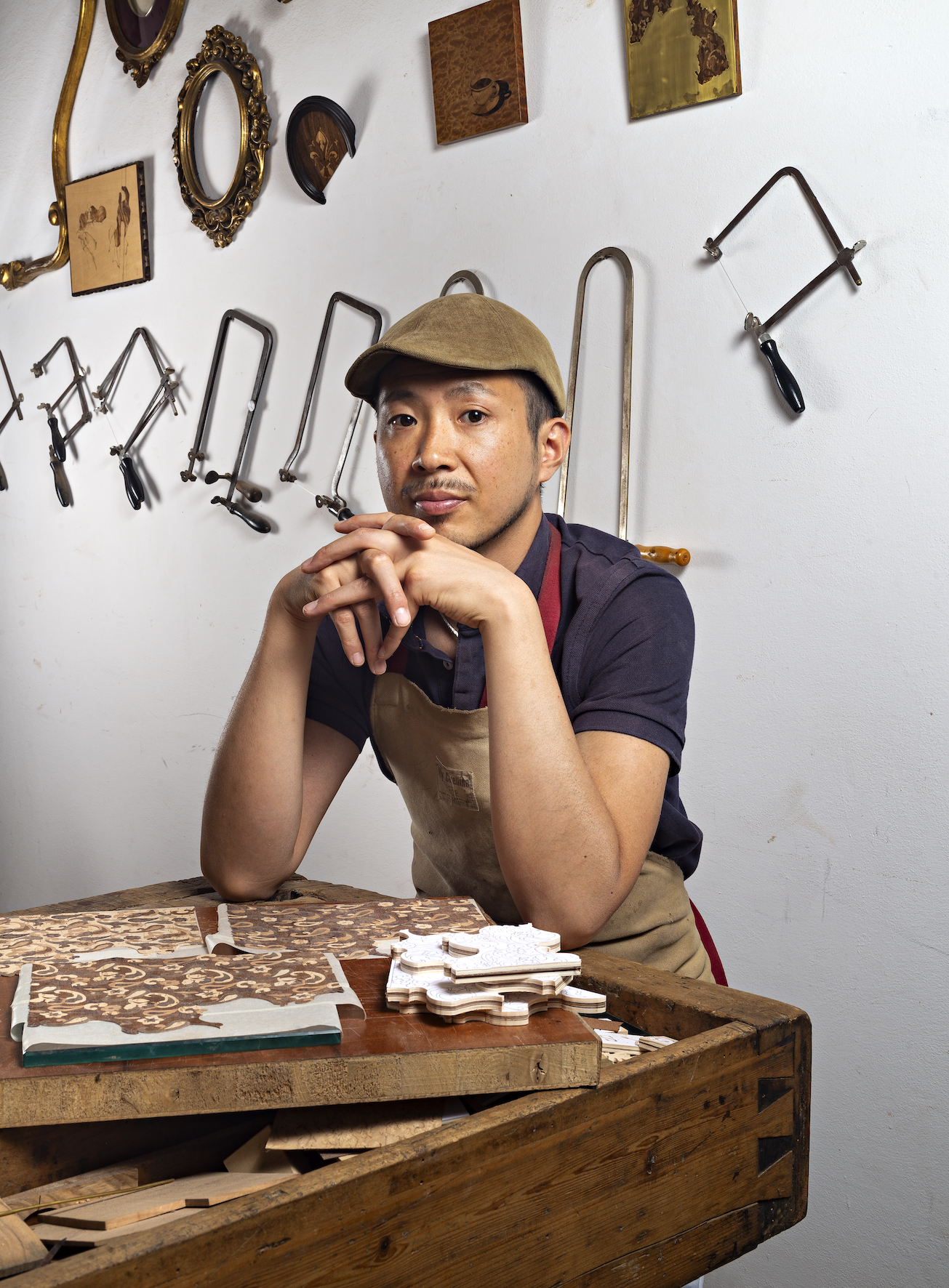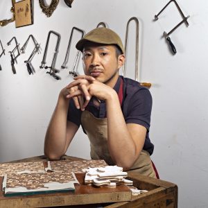 In Japanese, Zouganista means “master of marquetry”. He is Takafumi Mochizuki, or simply Taka: creative, kind and imaginative soul. When one gets in his workshop, which he opened in 2014 in the area of Oltrarno in Florence, one is immediately astonished by the variety of wood available, the odd or ancient objects, which he regenerates and transforms into new, precious and inlaid artworks. The atelier is a treasure chest of knowledge from the East, such us the “Kintsugi”, a gilding technique applied to cracks, which he uses to decorate his pieces. Taka’s workshop is a perfect demonstration of how contemporary artistic craftsmanship can renovate the oldest techniques of the ancient tradition.